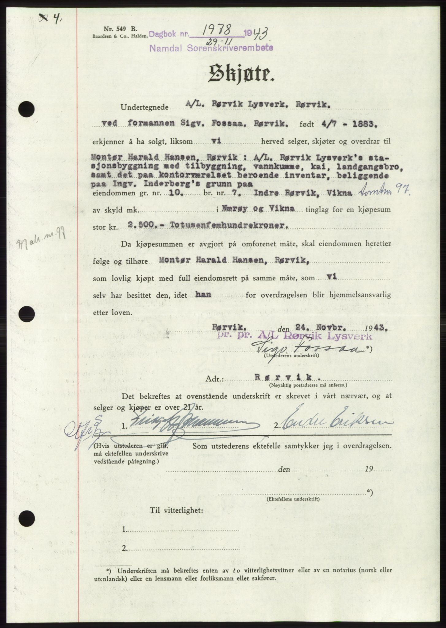 Mortgage book for Namdal sorenskriveri 1943-1944, Astaref: AV/SAT-A-4133/1/2/2C