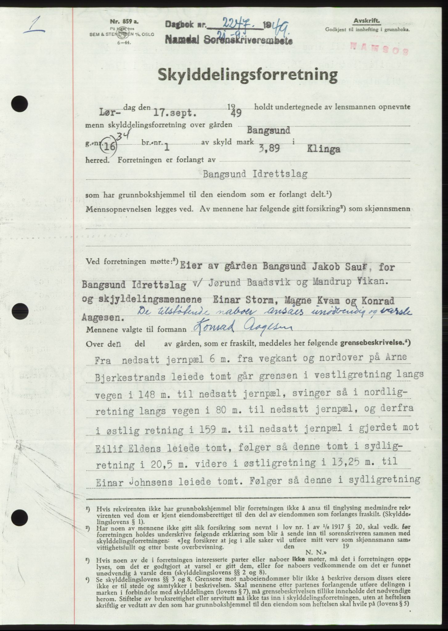 Mortgage book for Namdal sorenskriveri 1949, Astaref: AV/SAT-A-4133/1/2/2C