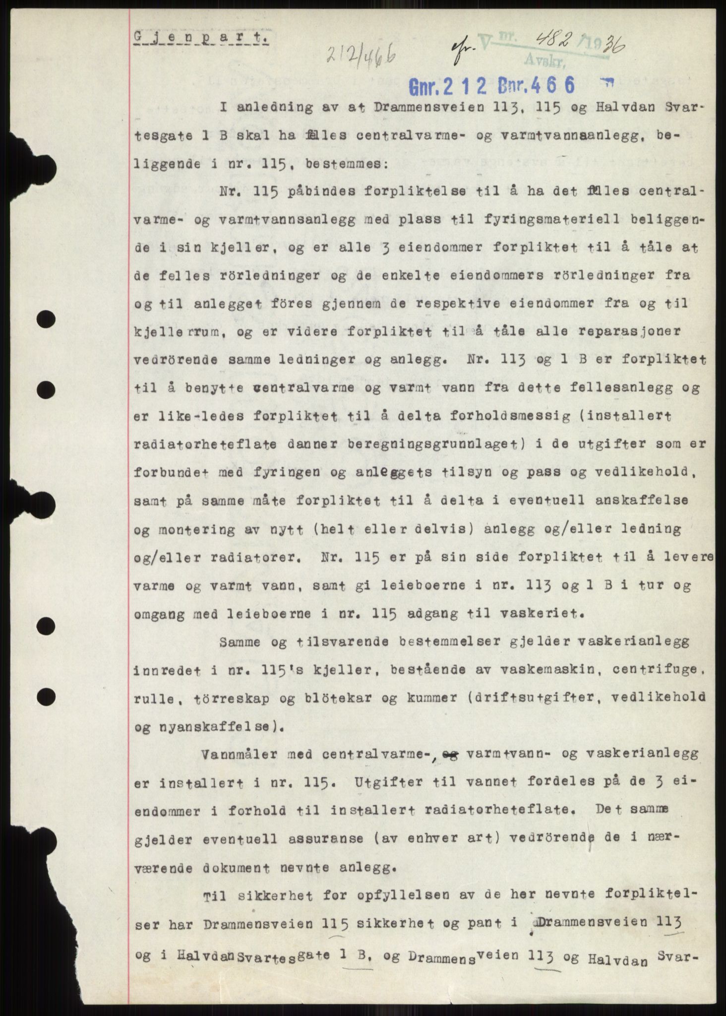 SAO-A-10227: Oslo byskriverembete 1: Arkivdel 1 G: Tinglysning Gb: Pantebøker Gbb: Pantebøker, Vestre distrikt Gbbd: Supplement til pantebøker A og B L0001: VS1 - Supplement. A- og B-dokumenter. Dagboknr. 482/1936-4506/1948. Aktarkiv tilbakeført til alminnelig pantebok Mortgage book