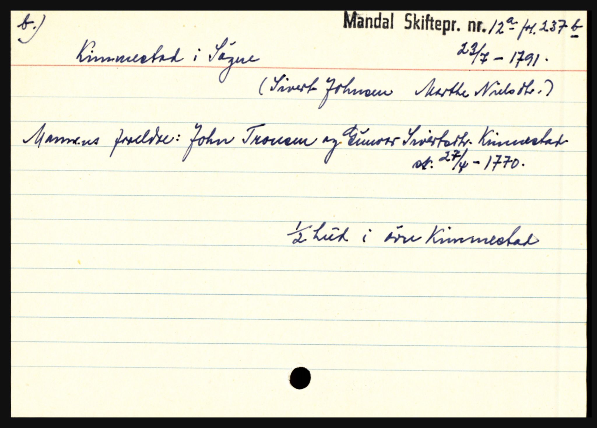 Mandal sorenskriveri, probate index cards, Astaref: AV/SAK-1221-0005/001/H