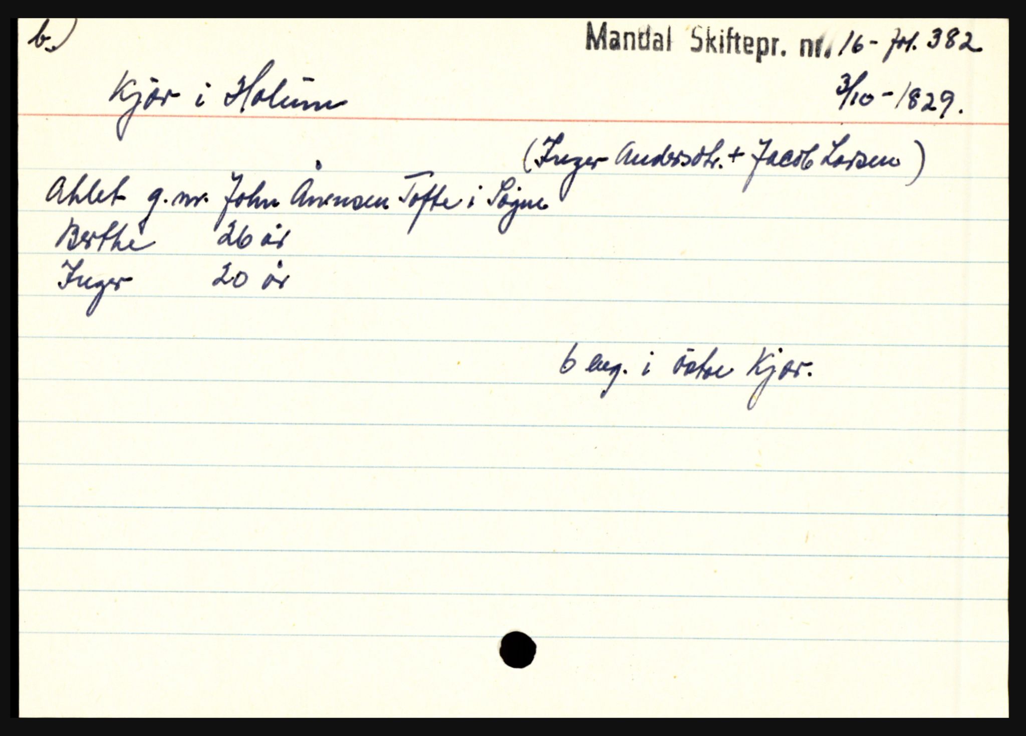 Mandal sorenskriveri, probate index cards, Astaref: AV/SAK-1221-0005/001/H