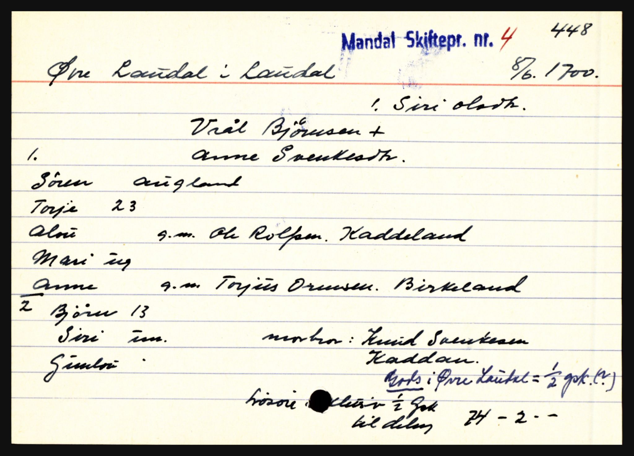 Mandal sorenskriveri, probate index cards, Astaref: AV/SAK-1221-0005/001/H