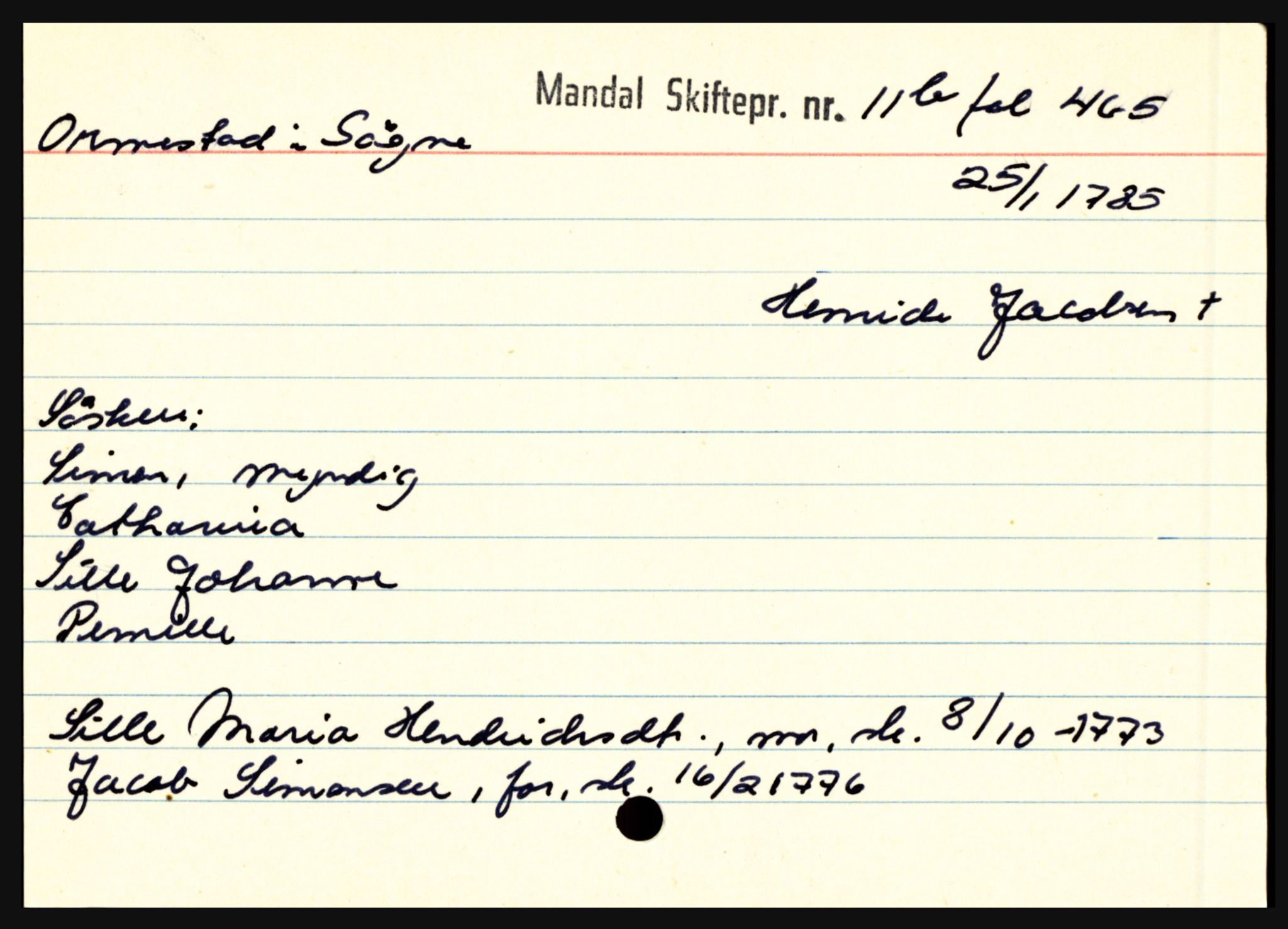 Mandal sorenskriveri, probate index cards, Astaref: AV/SAK-1221-0005/001/H