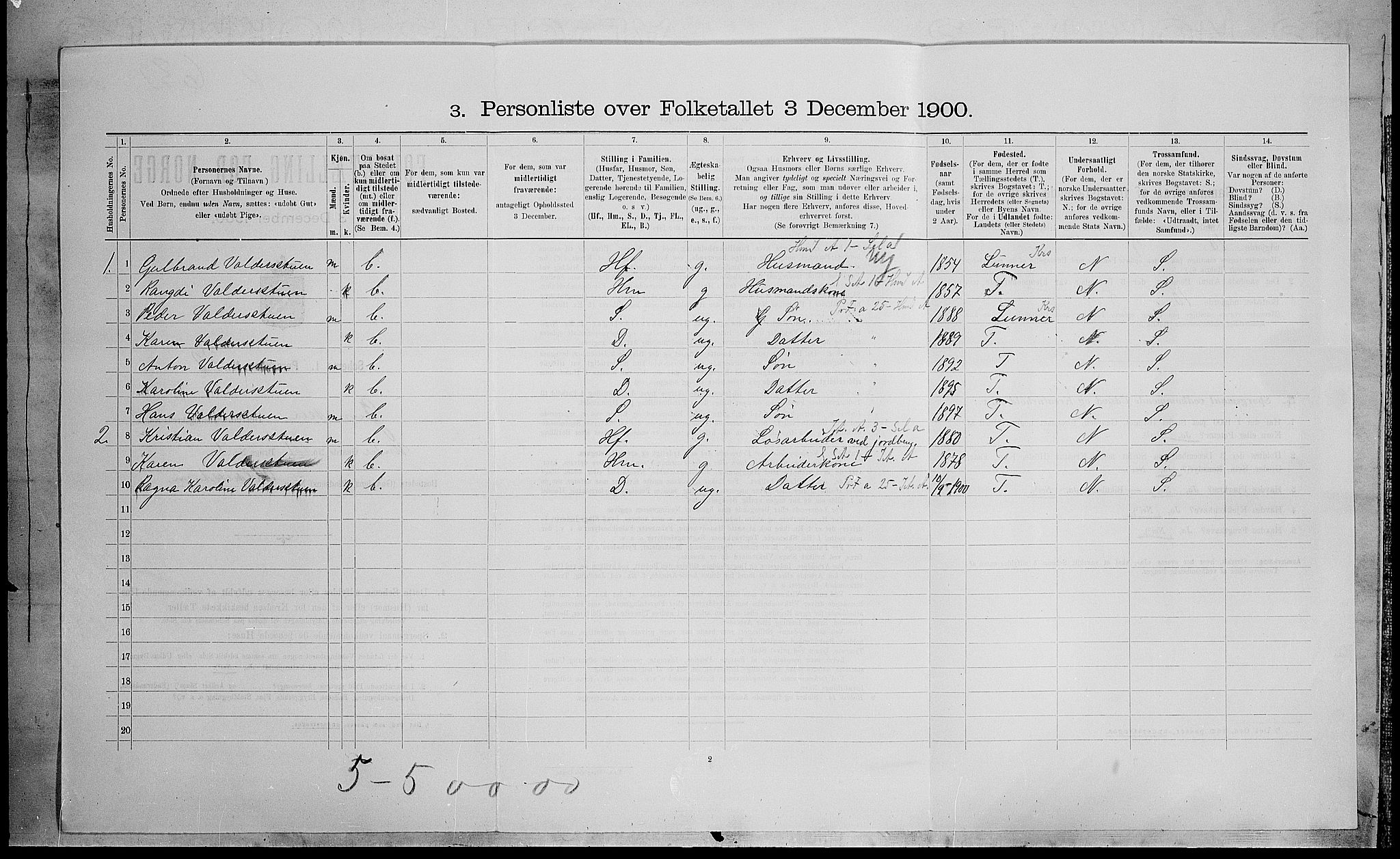 - Censuses 1900 Census Personalia State archives Departmental institutions