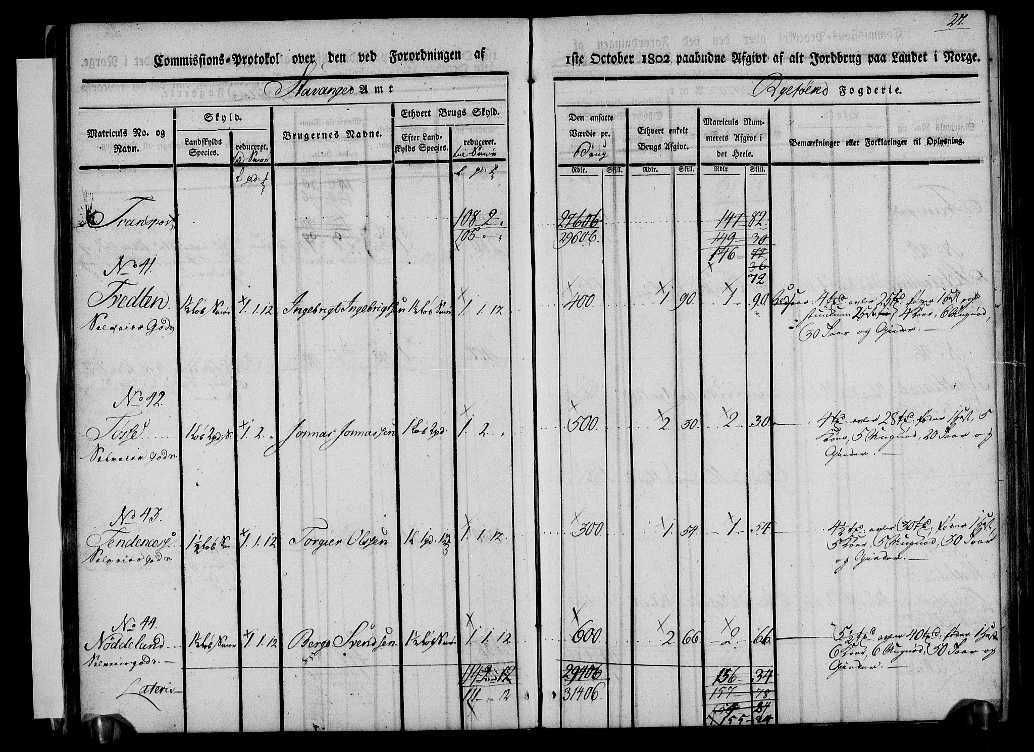 Jordavgift etter forordning 1. oktober 1802, nr. 101: Kommisjonsprotokoll for Jelsa, Hjelmeland og Årdal skipreider i Ryfylke fogderi, Astaref: AV/RA-EA-4070/N/Ne/Nea/L0101