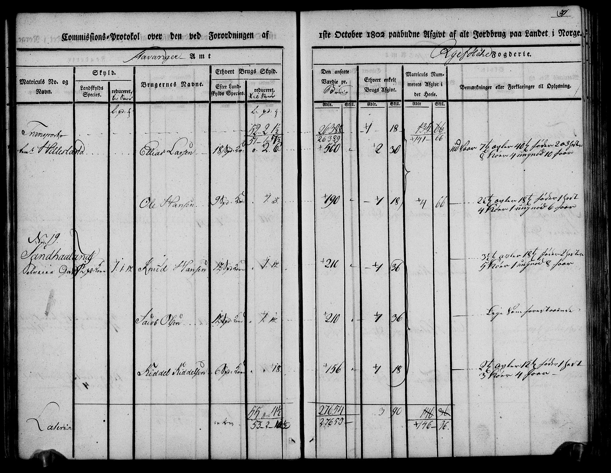 Jordavgift etter forordning 1. oktober 1802, nr. 104: Kommisjonspr. for Stangeland, Avaldsnes, Skåre, Hetland og Leiranger skipreider i Ryfylke fogder, Astaref: AV/RA-EA-4070/N/Ne/Nea/L0104
