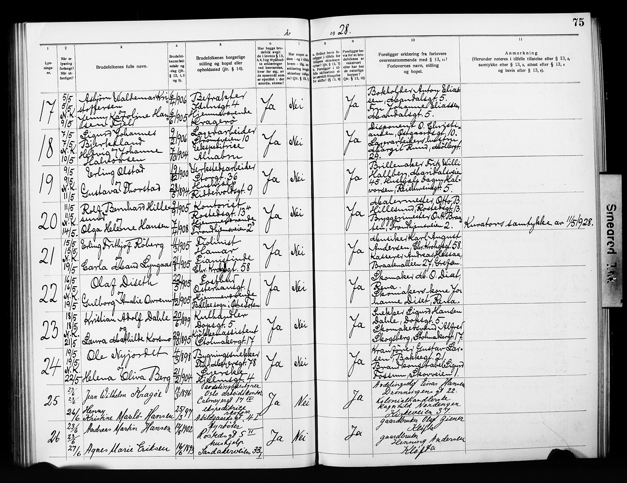 Banns register for Jakob local parish in Oslo (Kristiania) 1919-1931, Astaref: AV/SAO-A-10850/H/Ha/L0003