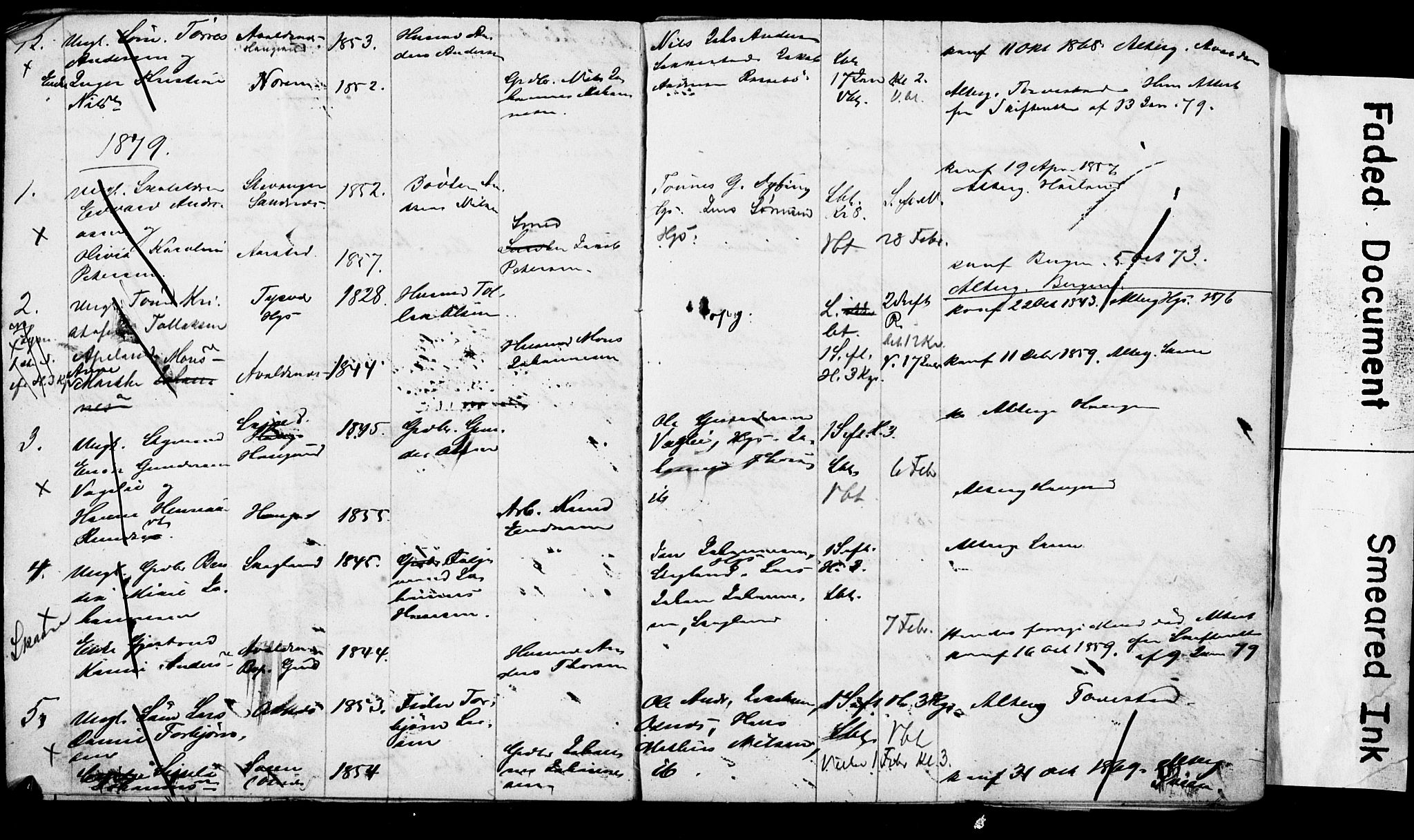 no. X 1B /1877 - 1879Rogaland county Torvastad parish Torvastad local parish Utsira local parish Skåre local parish -Church booksPersonaliaEngagements, banns and marriageState archivesThe church