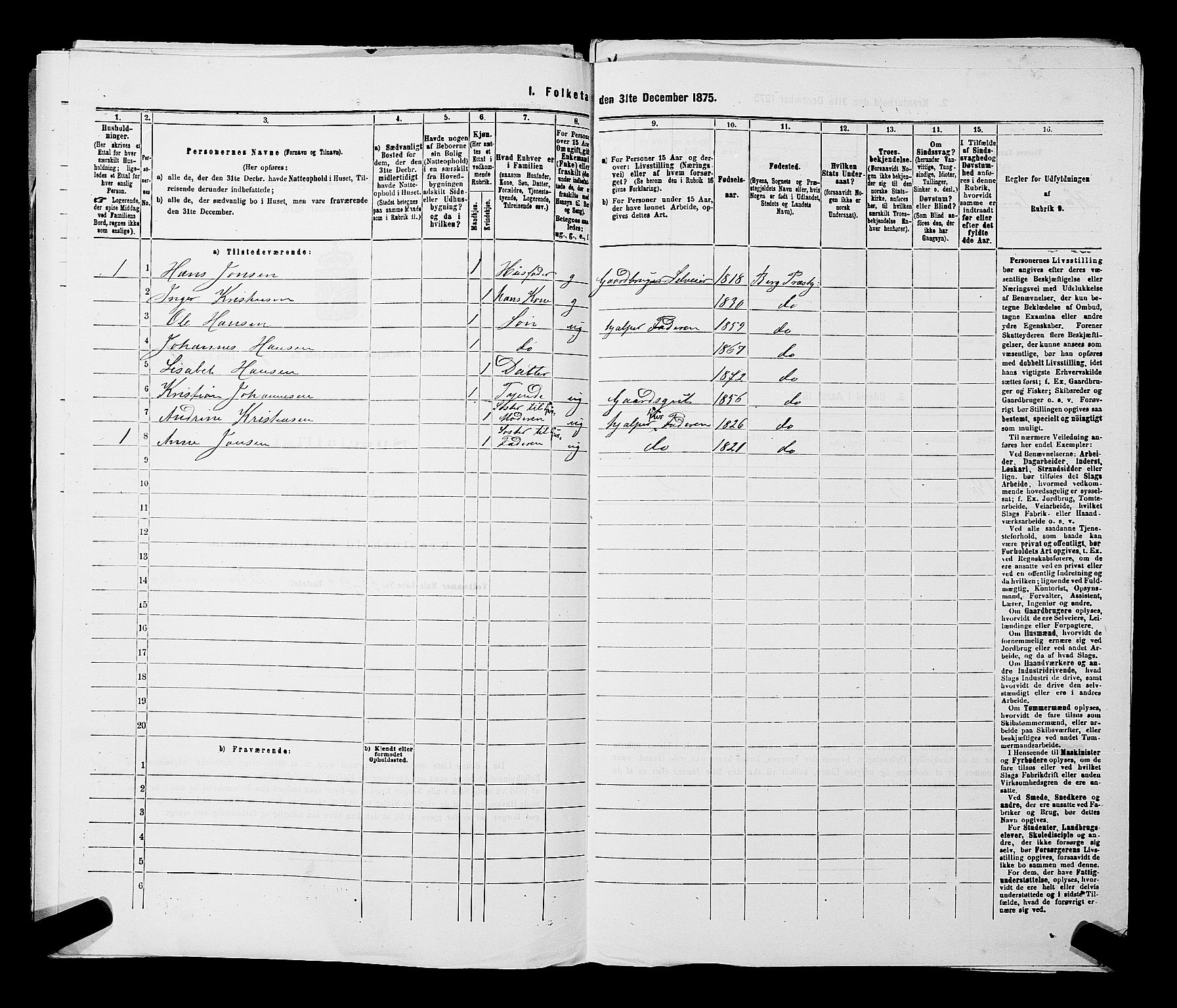 1875 census for 0116P Berg, Astaref: AV/RA-S-2231/E