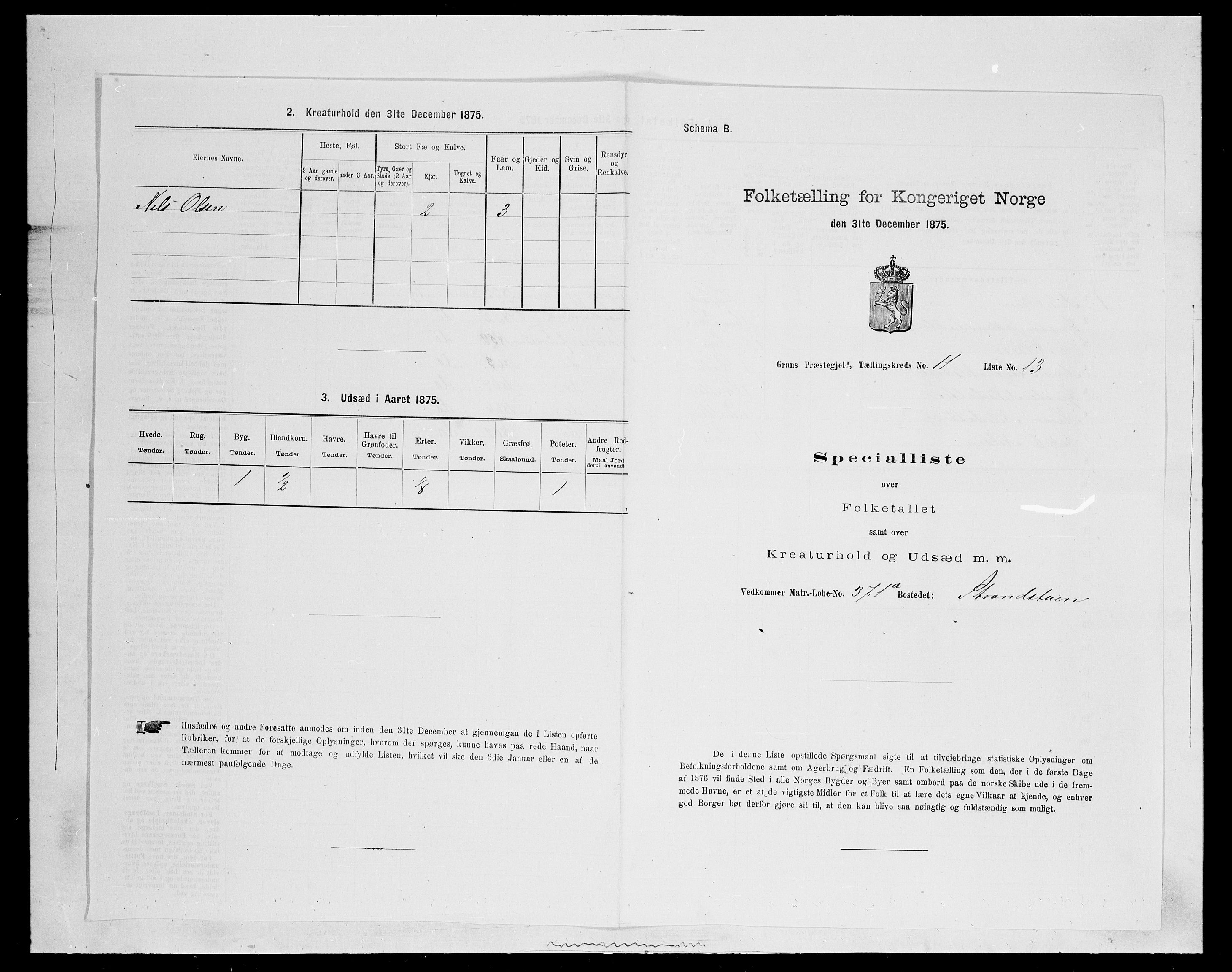 1875 census for 0534P Gran, Astaref: AV/SAH-FOLKETELLOS-07/H/Ha