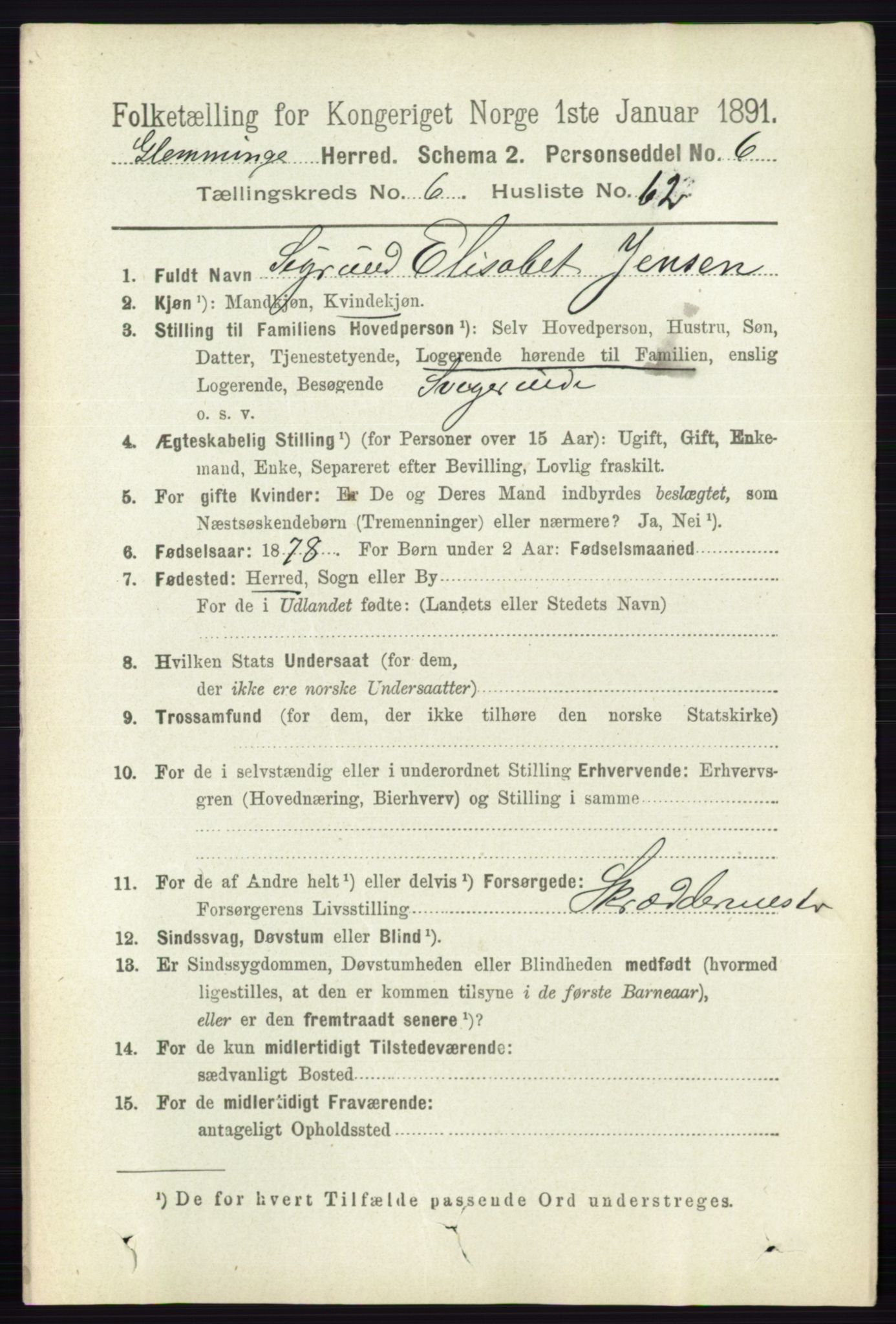 0002: Glemminge: Tellingskrets 1-2 State Census 01.01.1891 Østfold county