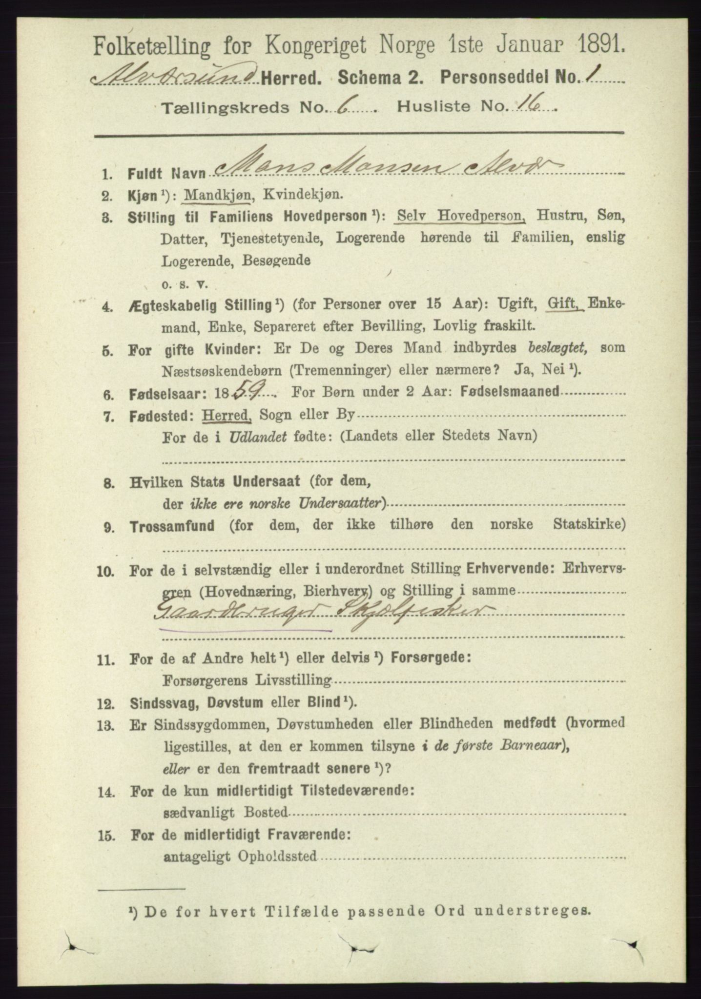 1891 census for 1257 Alversund, Astaref: AV/RA-S-2231/E/Ea/L0403/0001