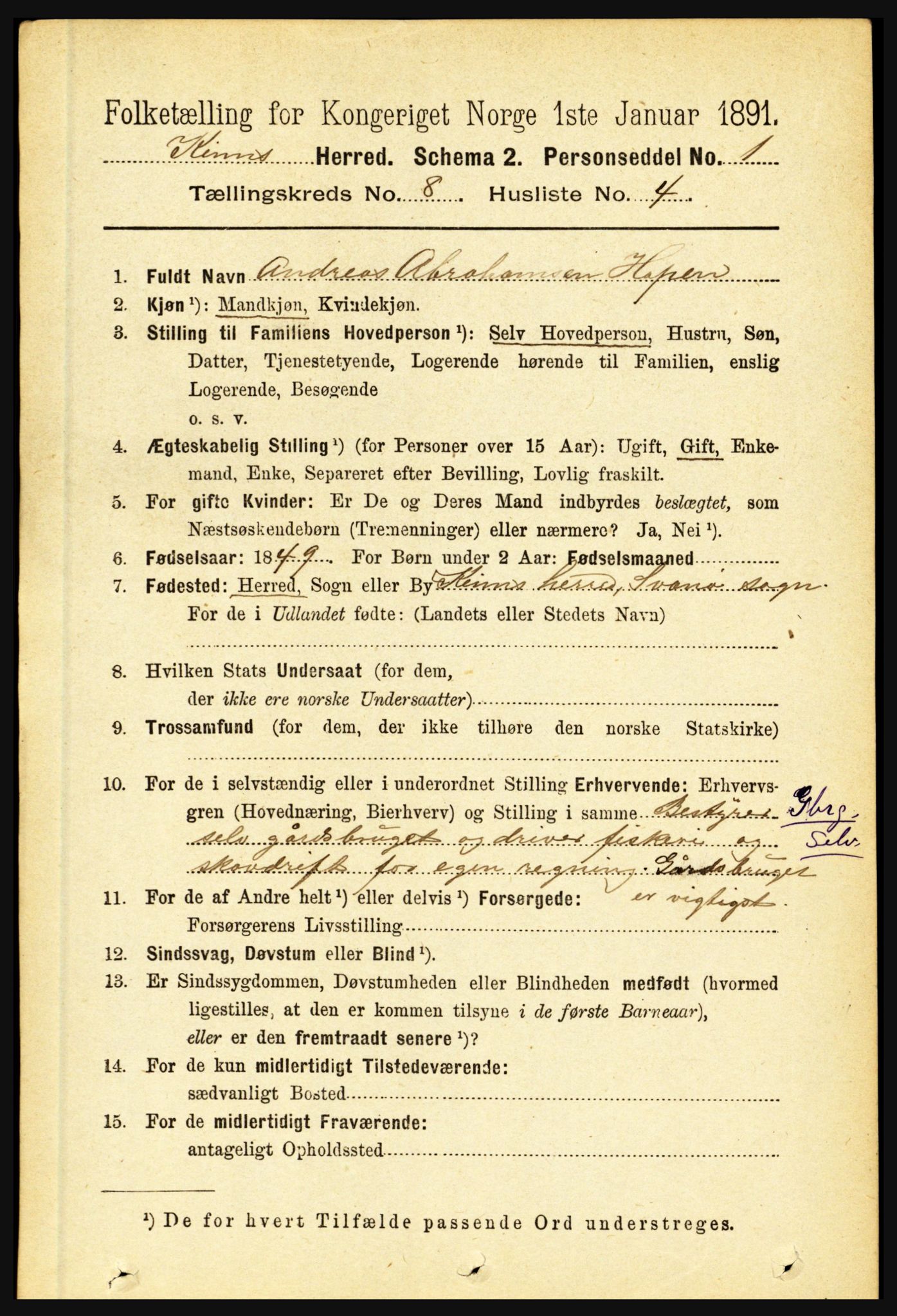 0004: Kinn: Tellingskrets 1 - Batalden, Barreksten, MR16-19 State Census 01.01.1891 Sogn og Fjordane county