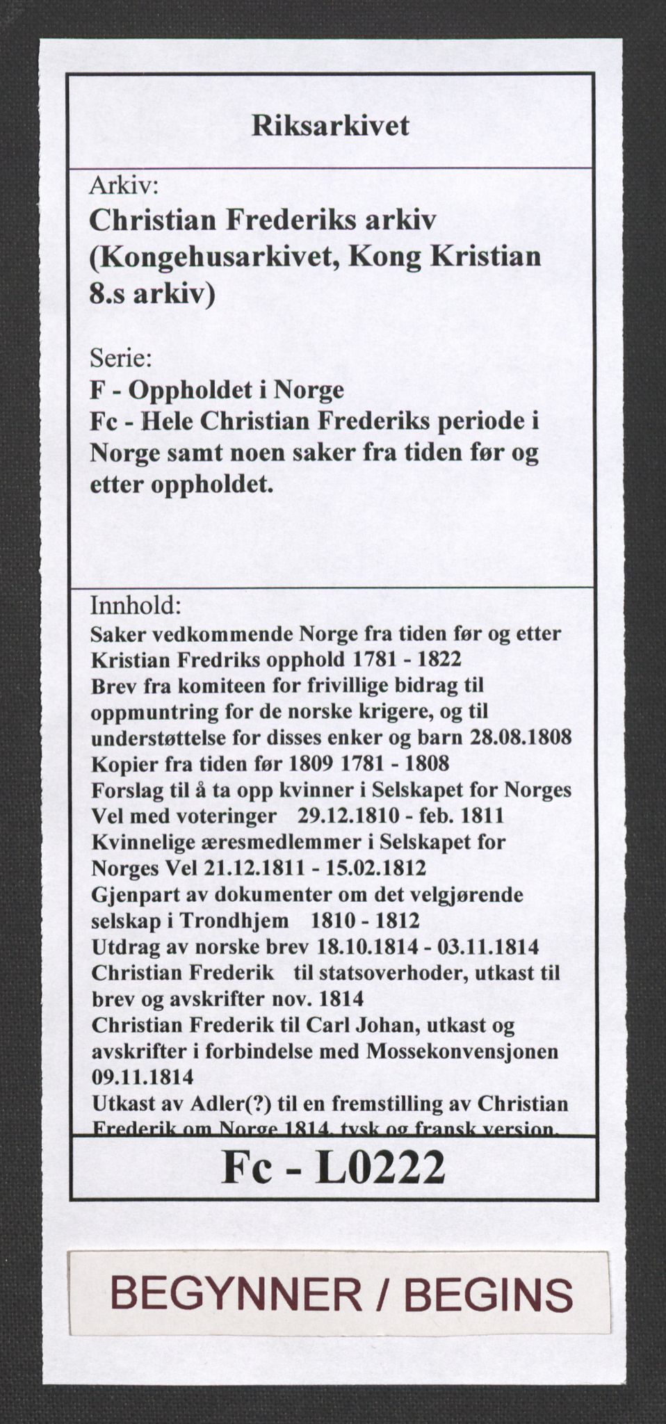 Christian Frederik, Oppholdet i Norge, Hele Christian Frederiks periode i Norge samt noen saker fra tiden før og etter oppholdet, nr. 222: Saker vedkommende Norge fra tiden før og etter Christian Frederiks opphold, 1781-1822, Astaref: AV/RA-EA-5938/F/Fc/L0222