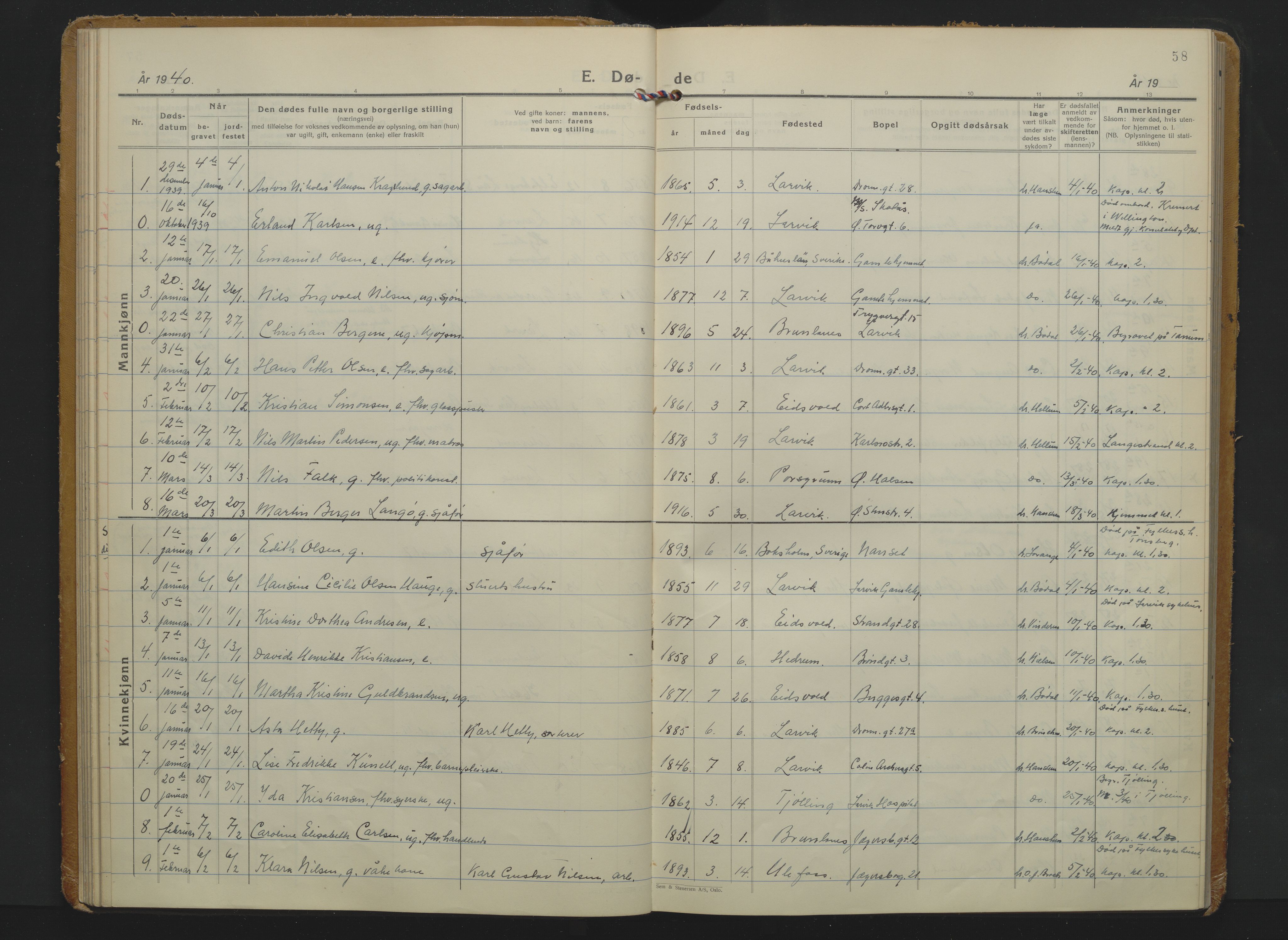 Parish register (official) for Larvik parish, Larvik local parish 1931-1959, Astaref: AV/SAKO-A-352/F/Fa/L0017