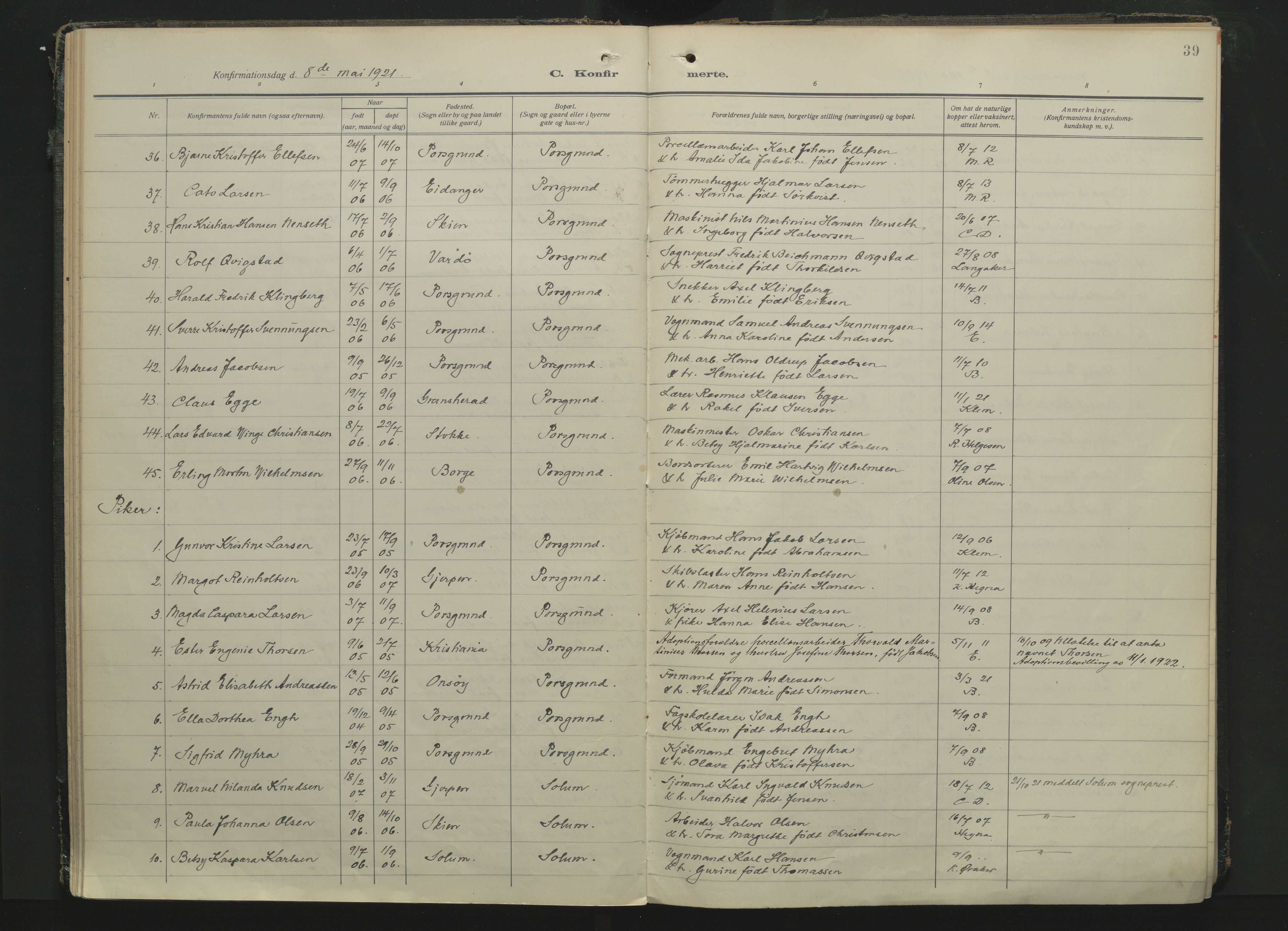 Parish register (official) for Porsgrunn parish 1915-1933, Astaref: AV/SAKO-A-104/F/Fa/L0013