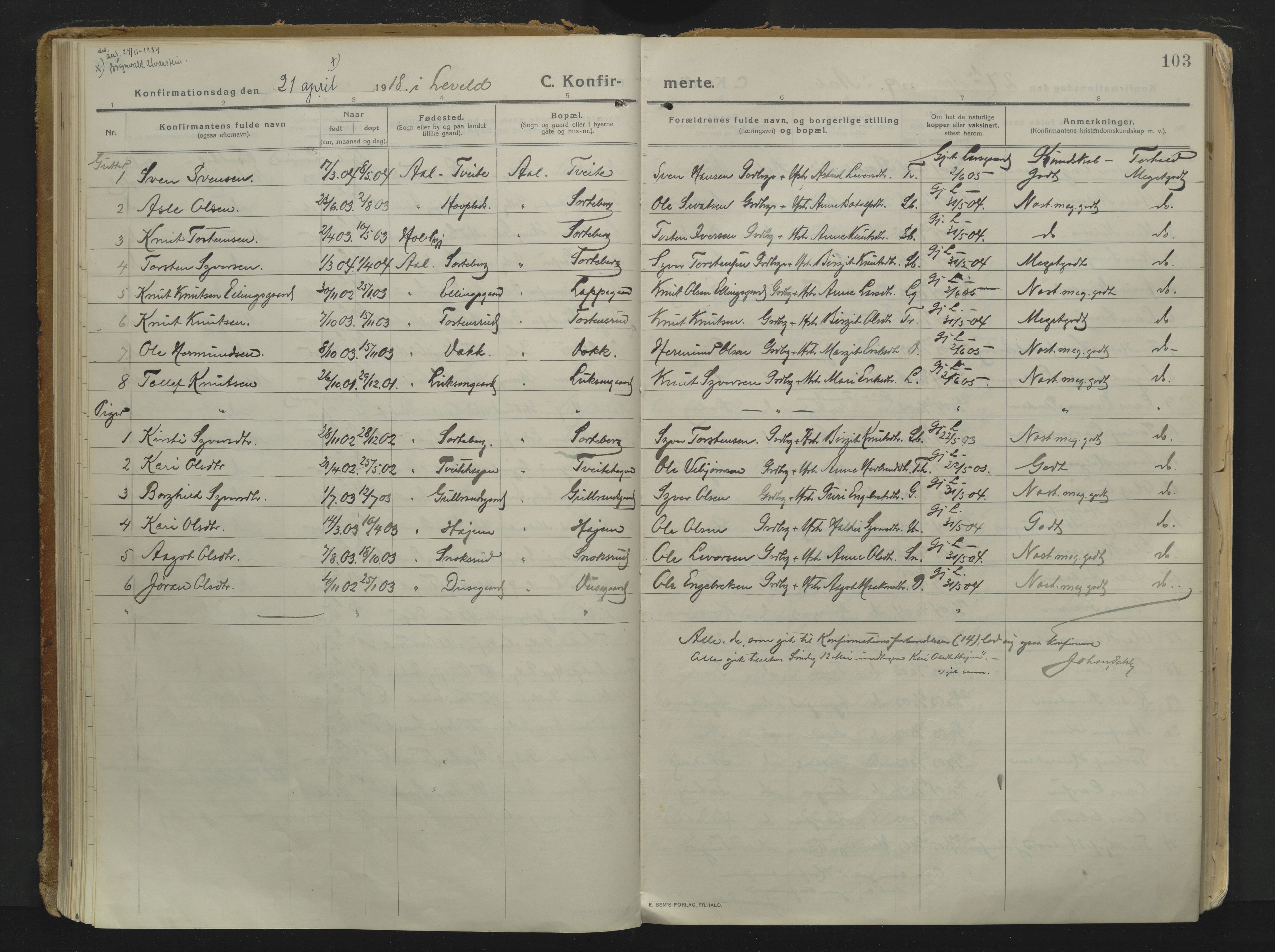 Parish register (official) for Ål parish, Ål local parish 1915-1934, Astaref: AV/SAKO-A-249/F/Fa/L0010