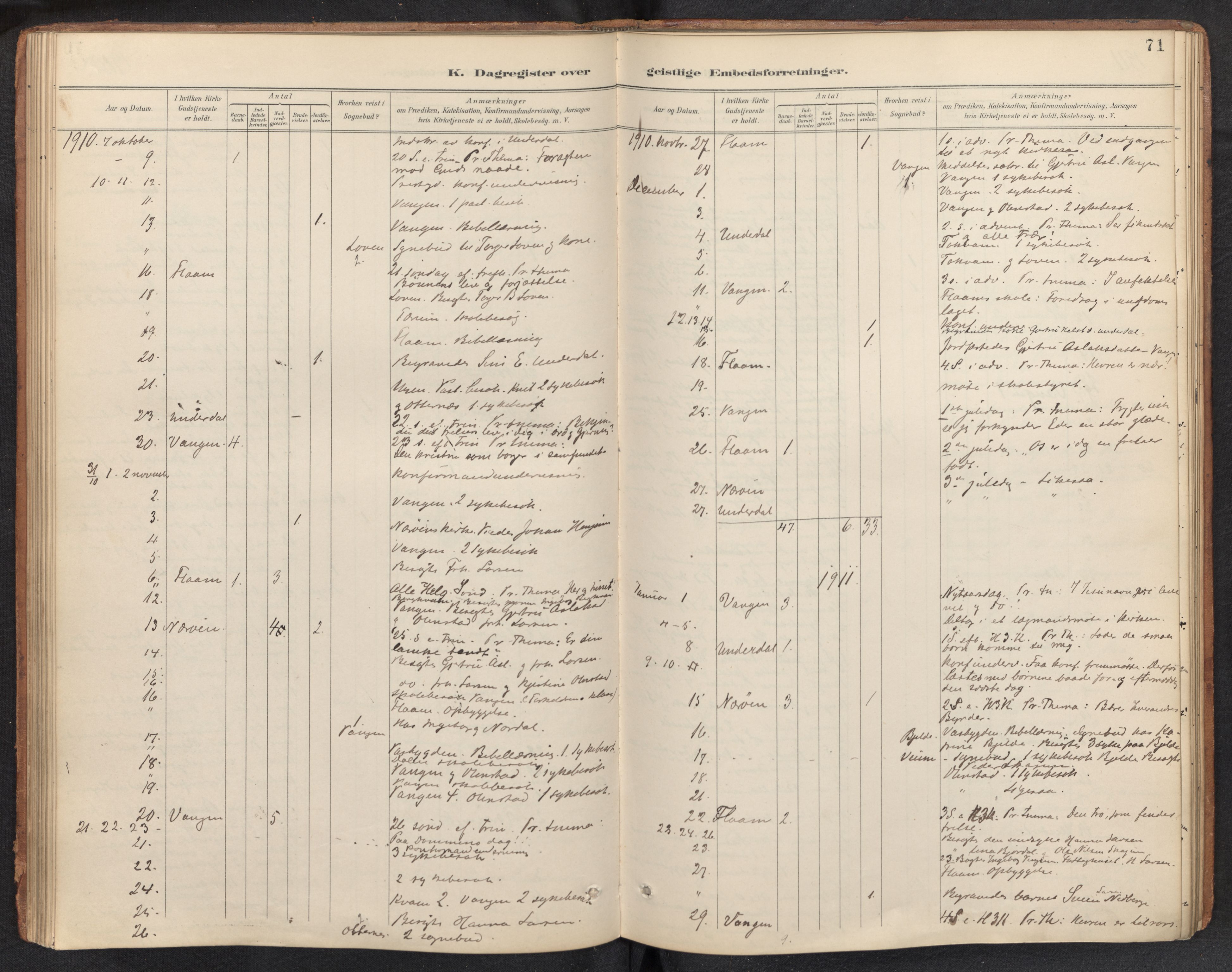 SAB-A-99937: Aurland sokneprestembete H: Kyrkjelege handlingar Ha: Kyrkjebøker Haf: Dagsregister Diary records