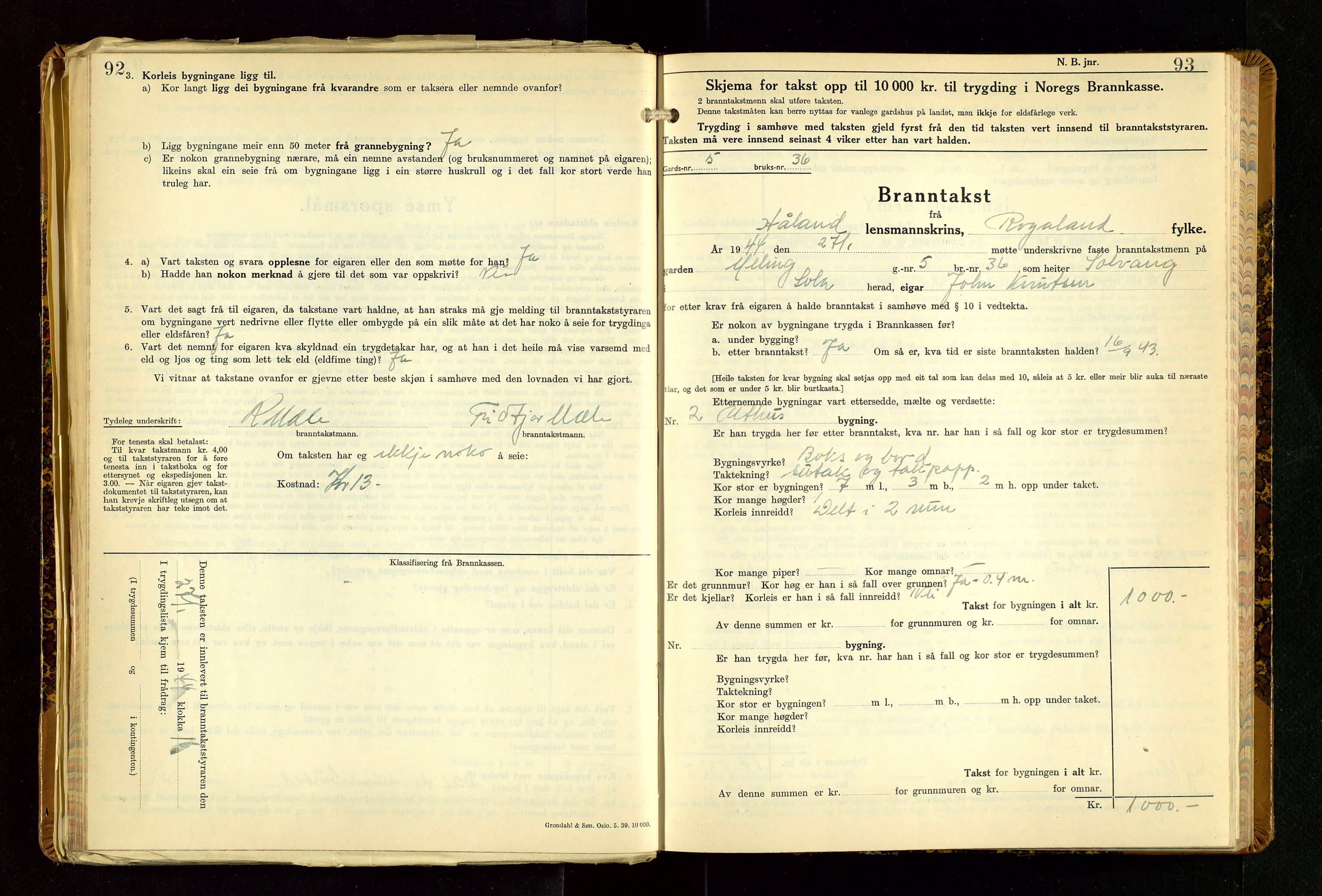 SAST-A-100100: Håland lensmannskontor Gob: Branntakstprotokoller - skjematakst L0013: "Branntakstprotokoll" - skjematakst. Register i boken. Fire assessment documents