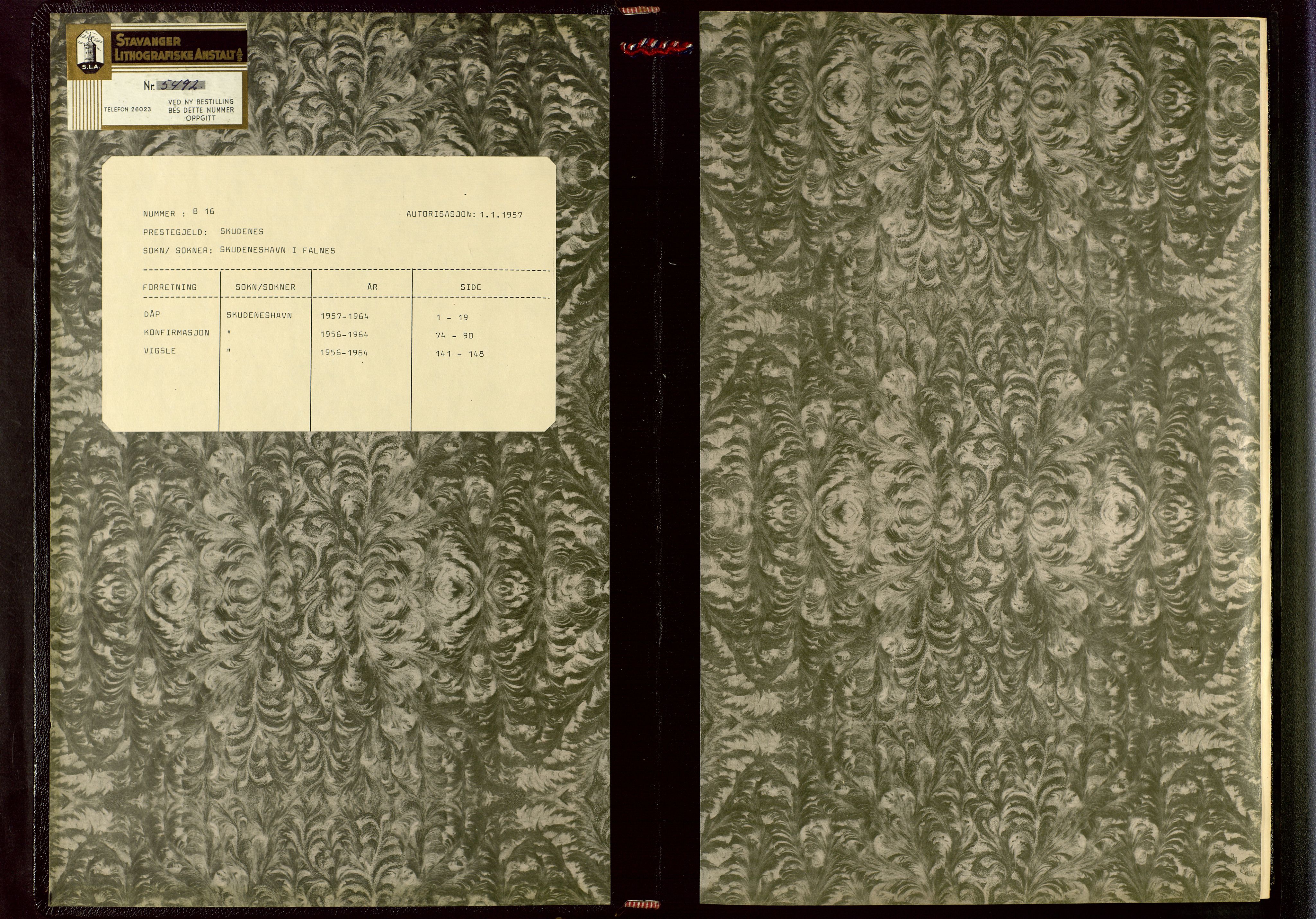 no. B 16 /1956 - 1964Rogaland county Skudenes parish Falnes local parish -Church booksSextons books, municipal officials booksPersonaliaBirths and christeningsConfirmationsEngagements, banns and marriageDeaths and burialsState archivesThe church