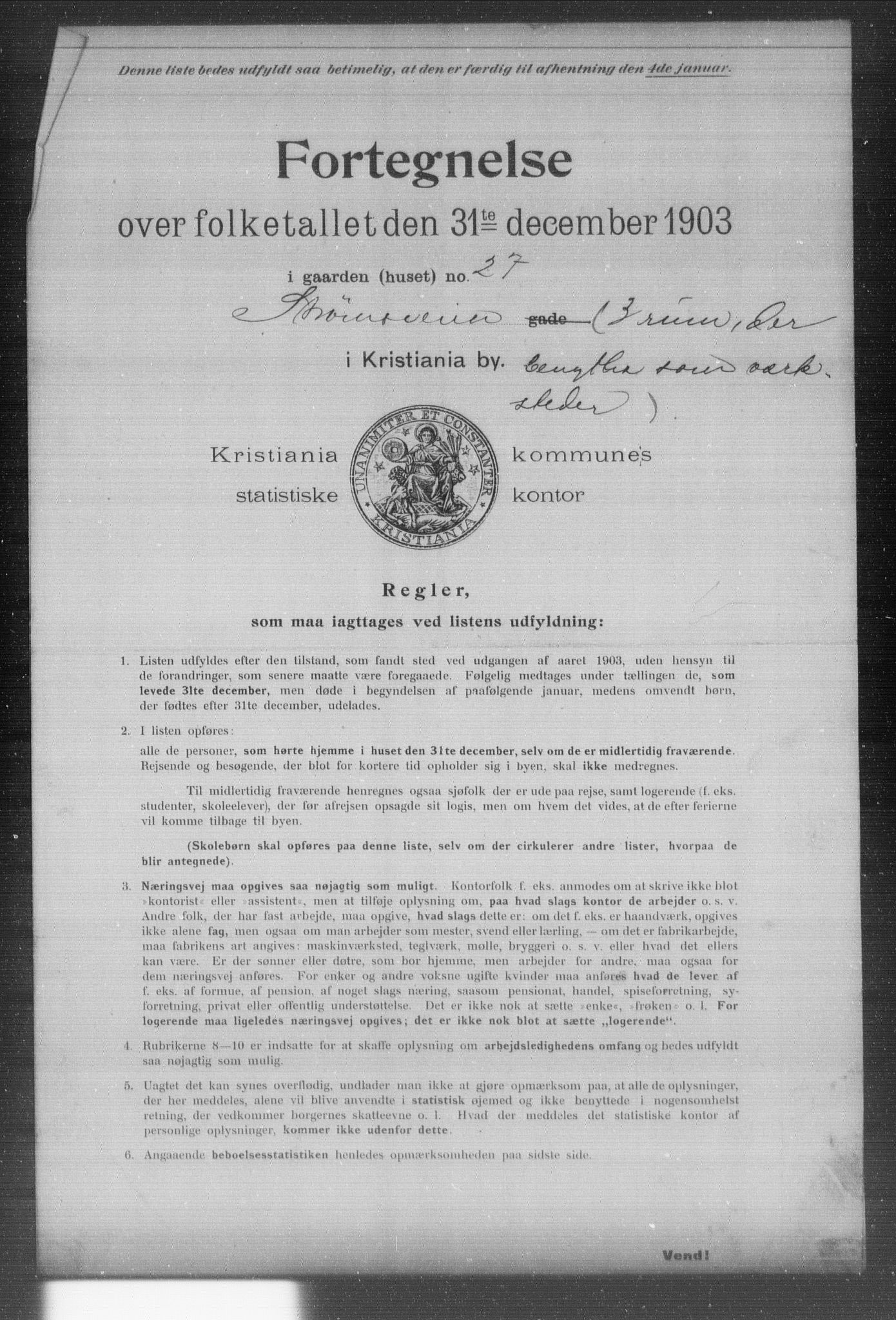 Municipal Census 1903 for Kristiania, Astaref: OBA/A-20057/Gbd