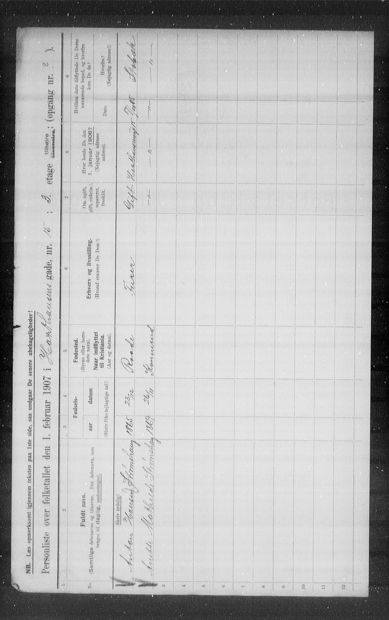 Municipal Census 1907 for Kristiania, Astaref: OBA/A-20057/Gbg