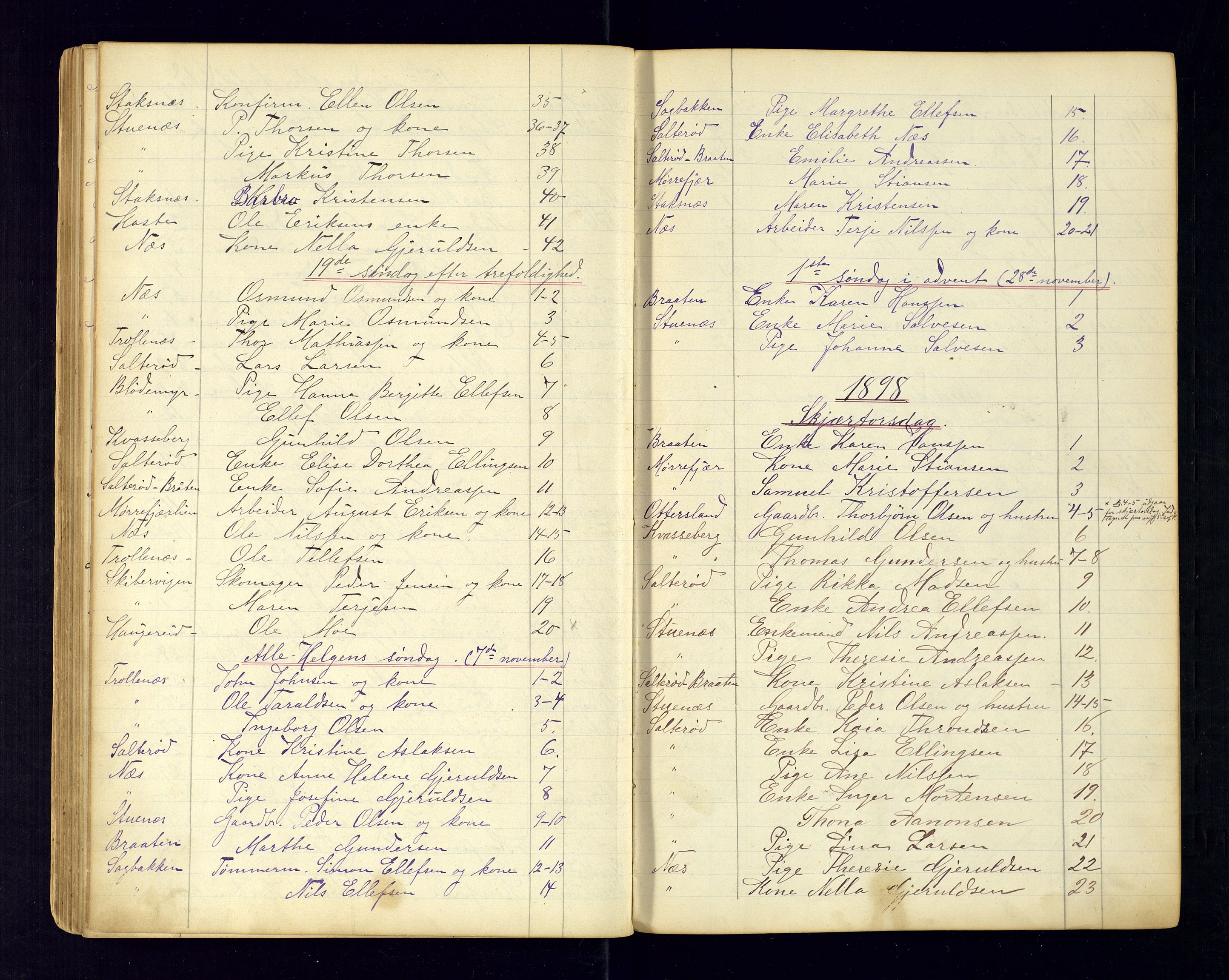 Communicants register for Austre Moland parish, Stokken local parish 1879-1939, Astaref: AV/SAK-1111-0001/F/Fc/Fcb/L0001