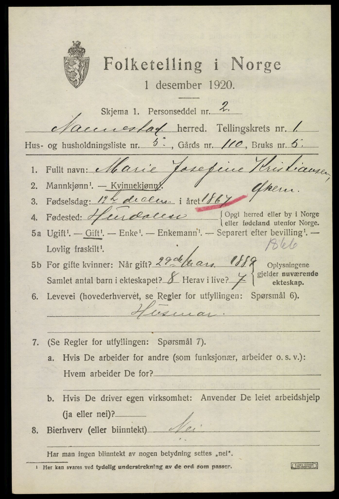 01.12.1920Akershus county Øvre Romerike bailiwick Nannestad muni. -Censuses1920 CensusPersonaliaState archivesDepartmental institutions