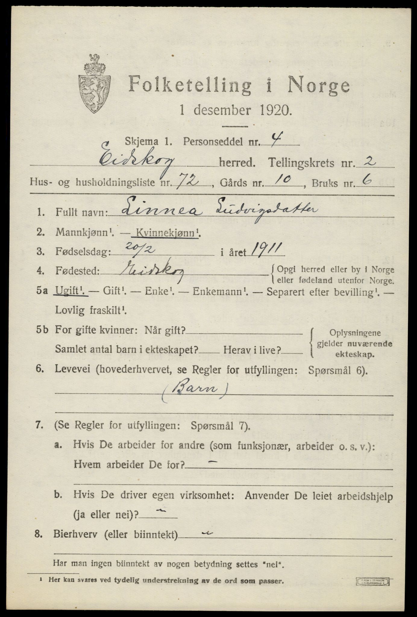 1920 census for Eidskog