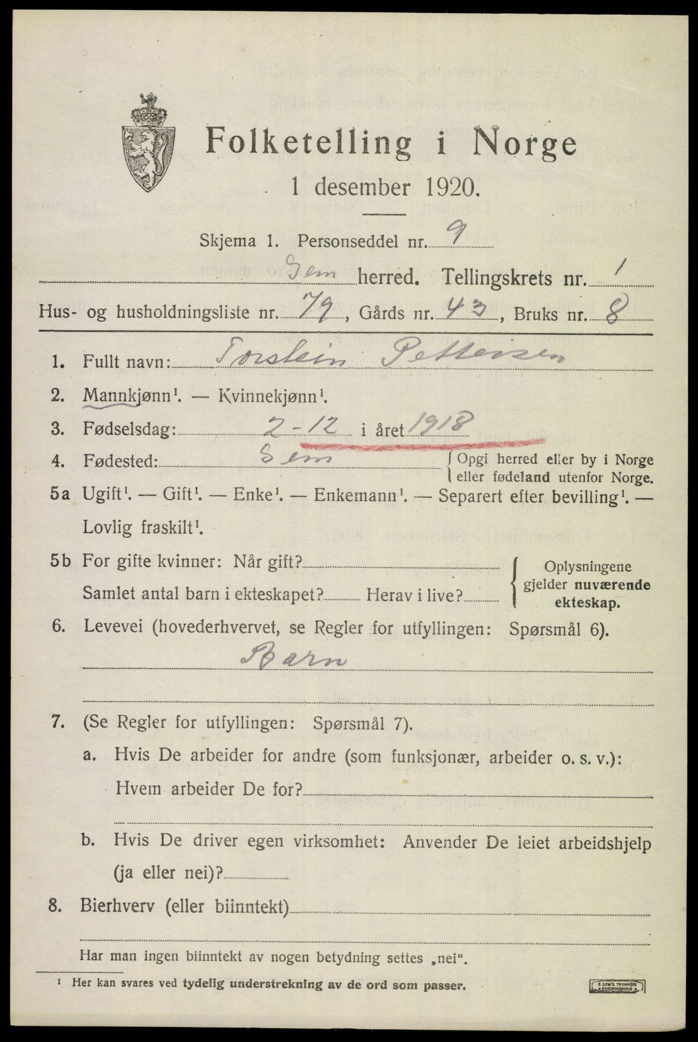 01.12.1920Vestfold county Jarlsberg bailiwick Sem muni. -Censuses1920 CensusPersonaliaState archivesDepartmental institutions