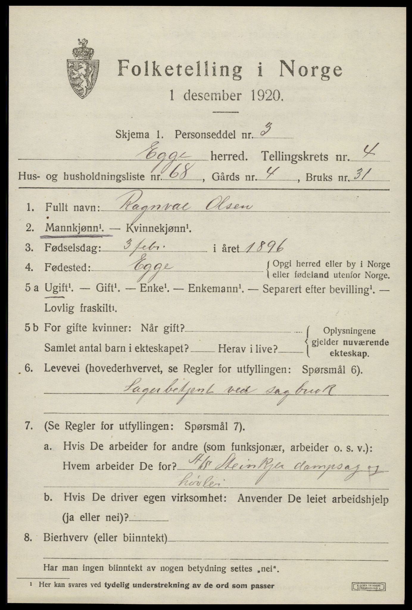 01.12.1920Nord-Trøndelag county Egge muni. -Censuses1920 CensusPersonaliaState archivesDepartmental institutions