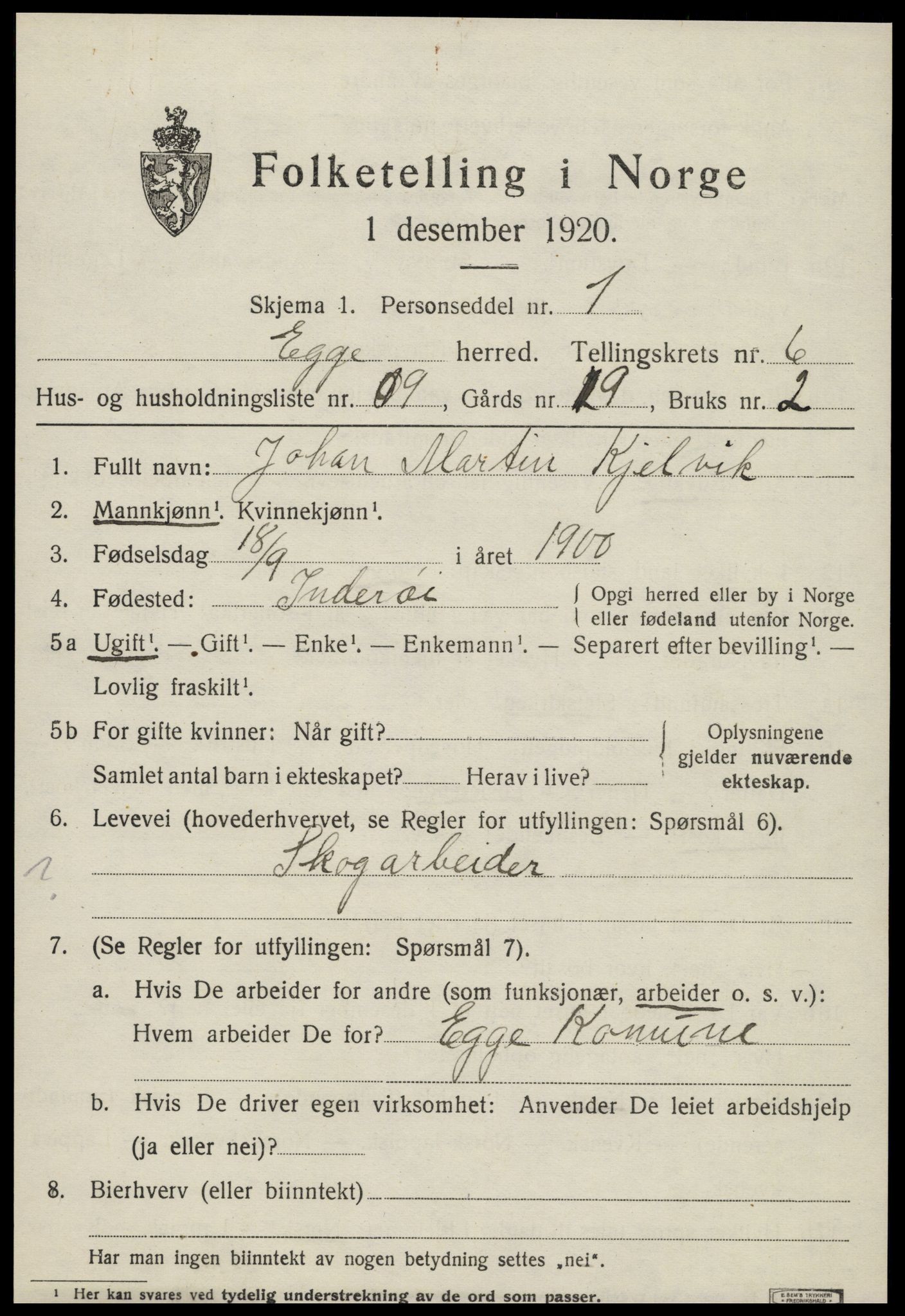 01.12.1920Nord-Trøndelag county Egge muni. -Censuses1920 CensusPersonaliaState archivesDepartmental institutions