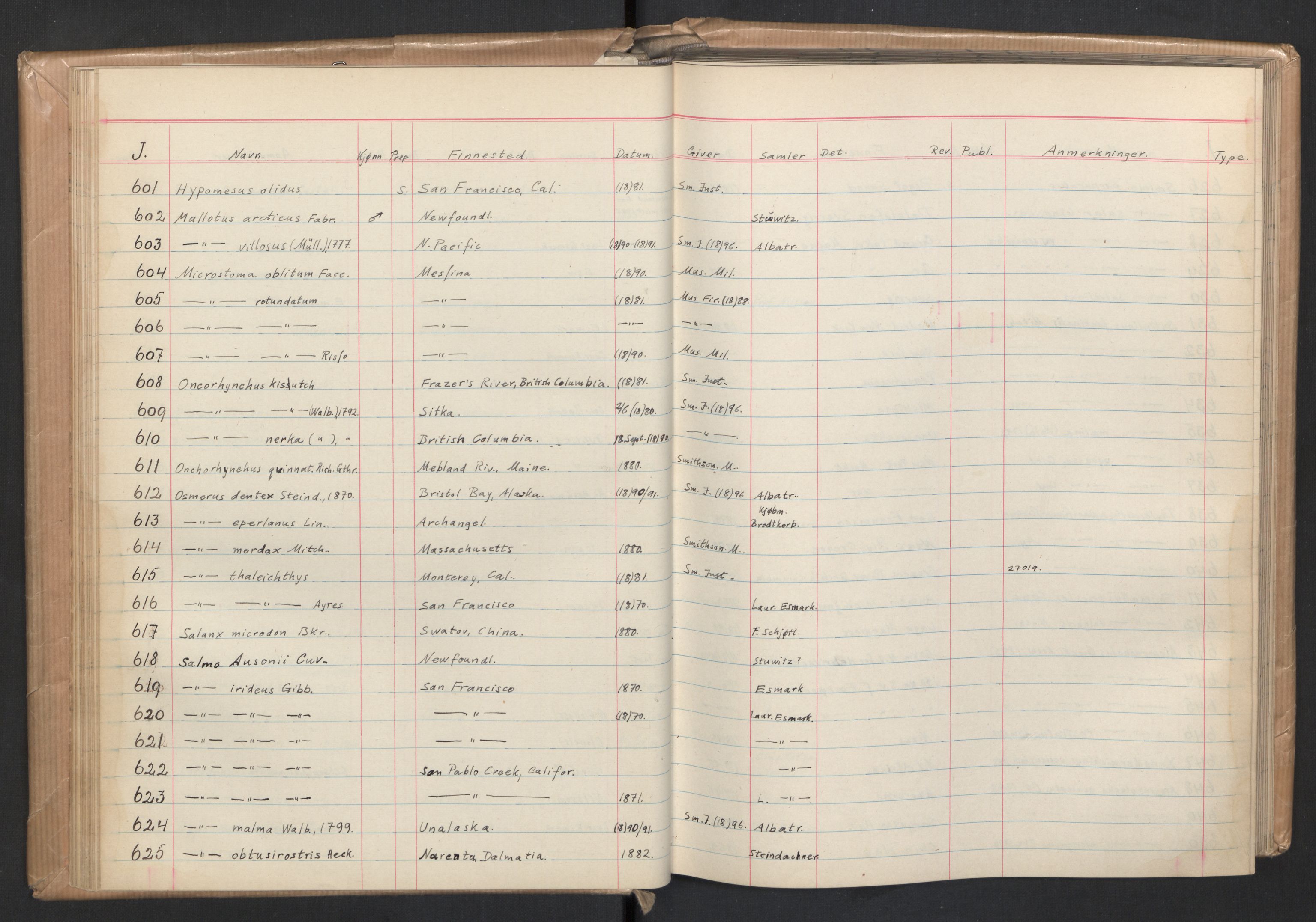Other source no. 04 - Fisk. Samlingsjournal. Fiskesamlingen (J), nr. 1-5000. State archives Departmental institutions