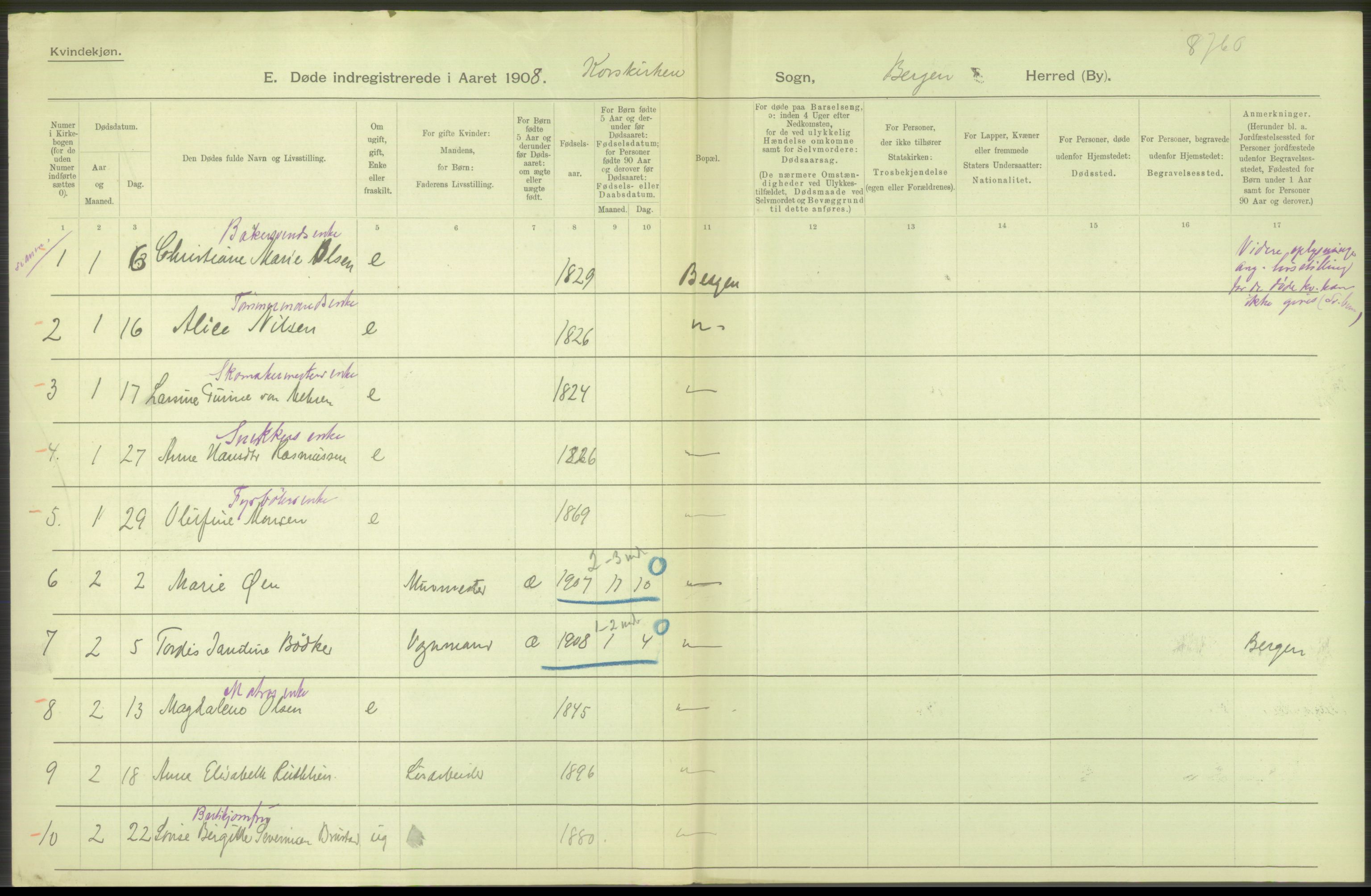 Statistisk Sentralbyrå, Folkemengdens bevegelse (Serie FB) 1908, no. 31: Bergen, Astaref: AV/RA-S-2228/D/Df/Dfa/Dfaf/L0031