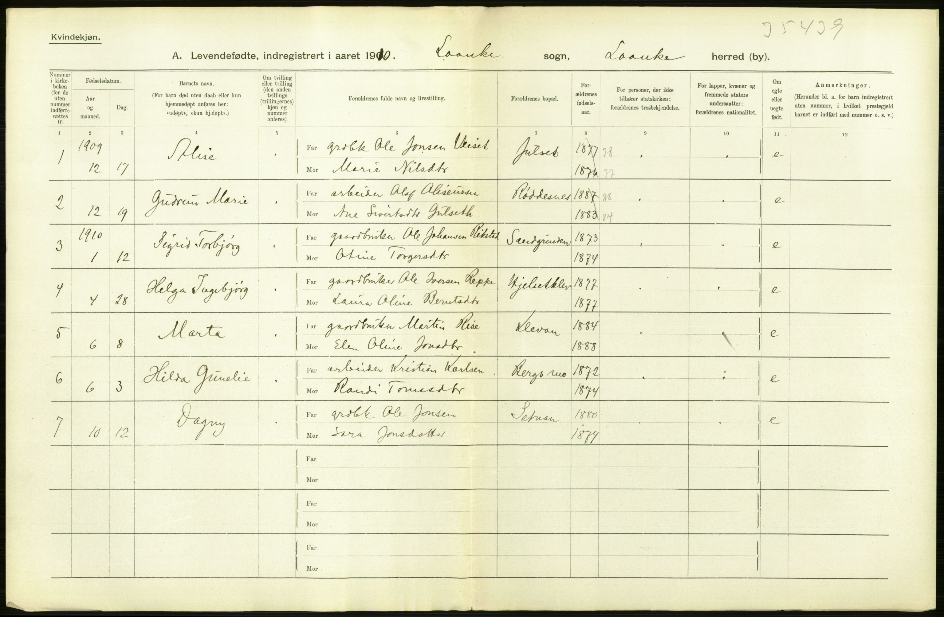 Statistisk Sentralbyrå, Folkemengdens bevegelse (Serie FB) 1910, no. 38: Nordre Trondhjems amt, Astaref: AV/RA-S-2228/D/Df/Dfa/Dfah/L0038