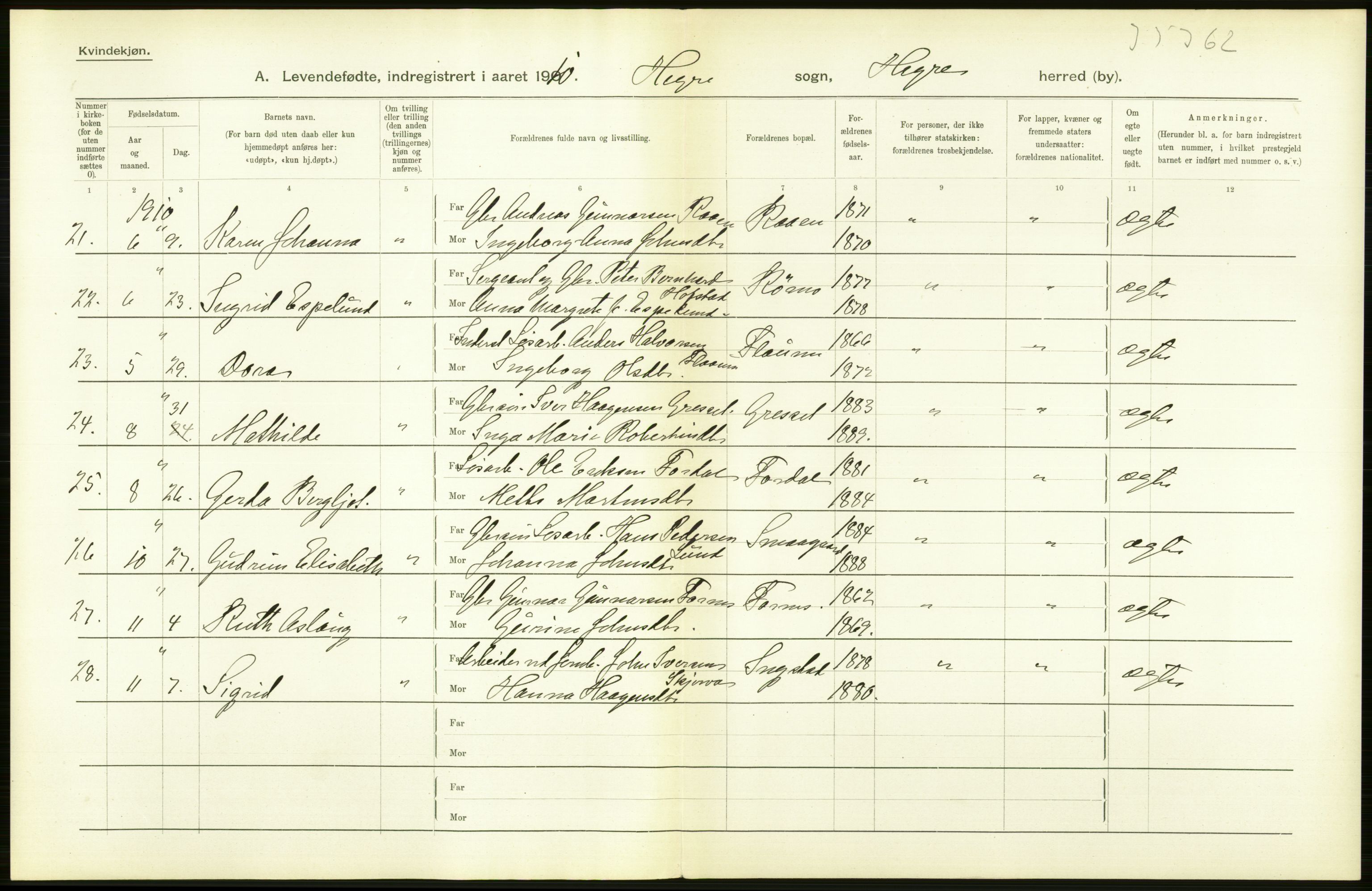 Statistisk Sentralbyrå, Folkemengdens bevegelse (Serie FB) 1910, no. 38: Nordre Trondhjems amt, Astaref: AV/RA-S-2228/D/Df/Dfa/Dfah/L0038