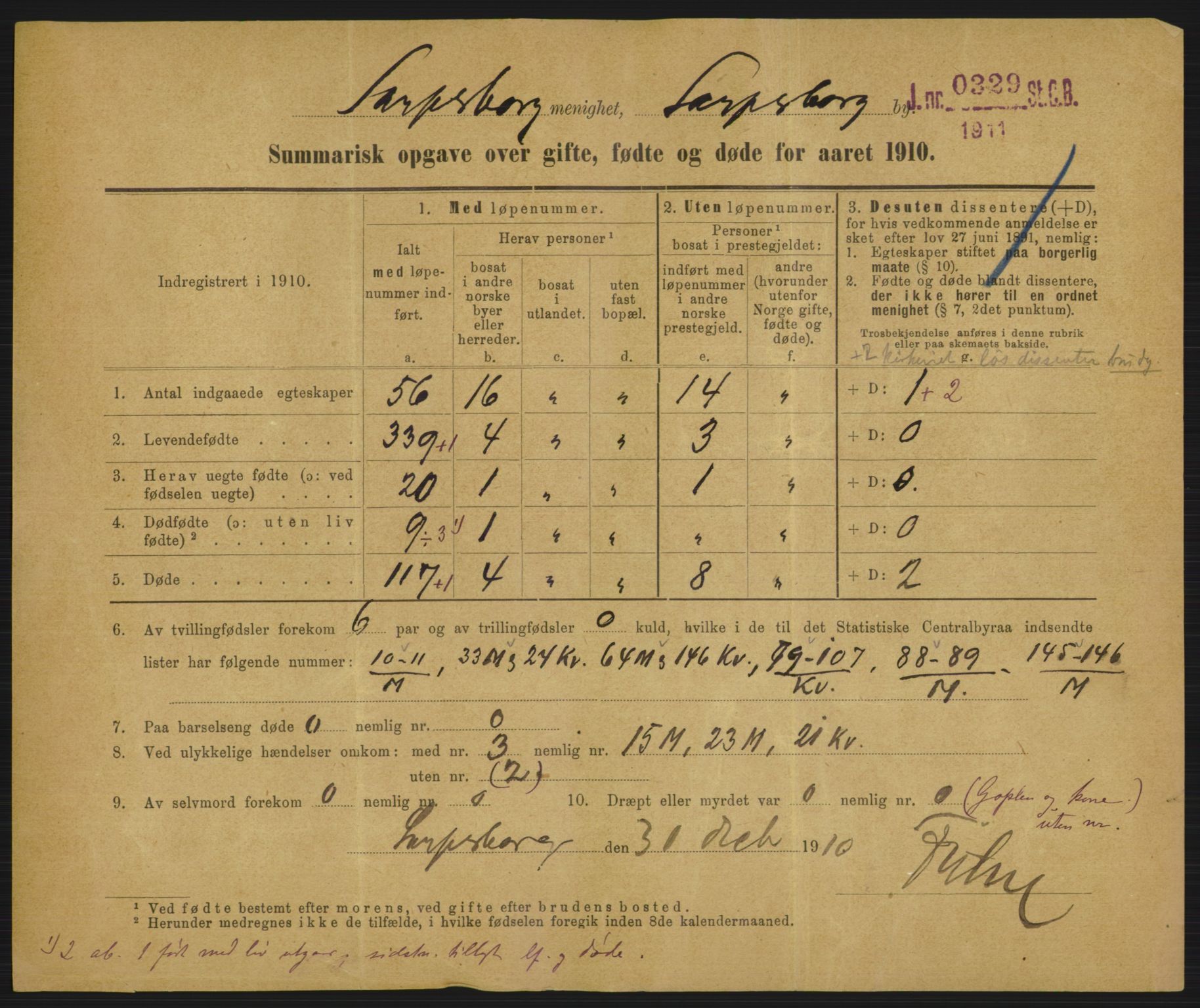 Population Statistics no. 46 /1910 - - Personalia State archives Departmental institutions