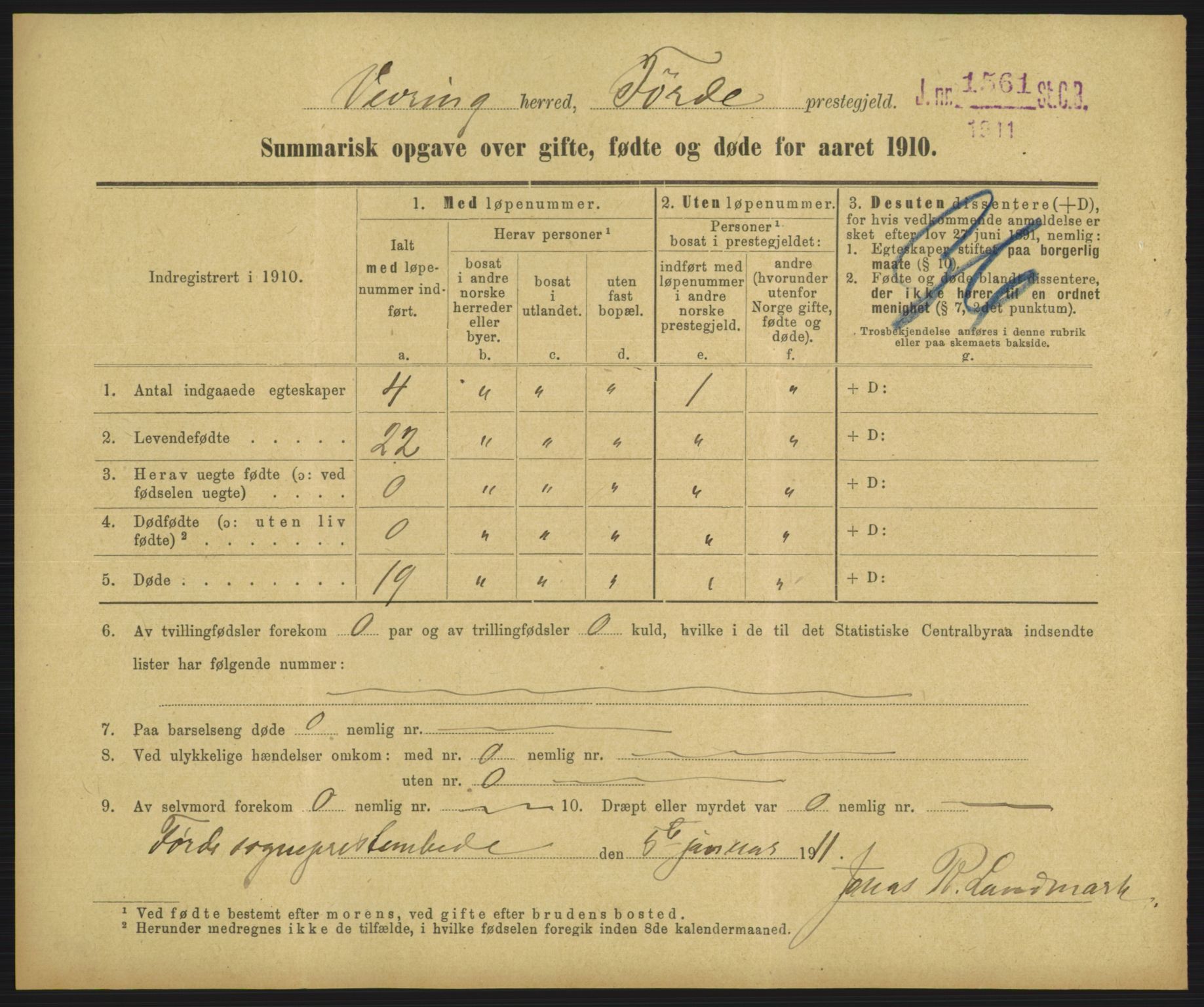 Statistisk Sentralbyrå, Folkemengdens bevegelse (Serie FB) 1910, no. 46: Nationwide statistics, Astaref: AV/RA-S-2228/D/Df/Dfa/Dfah/L0046