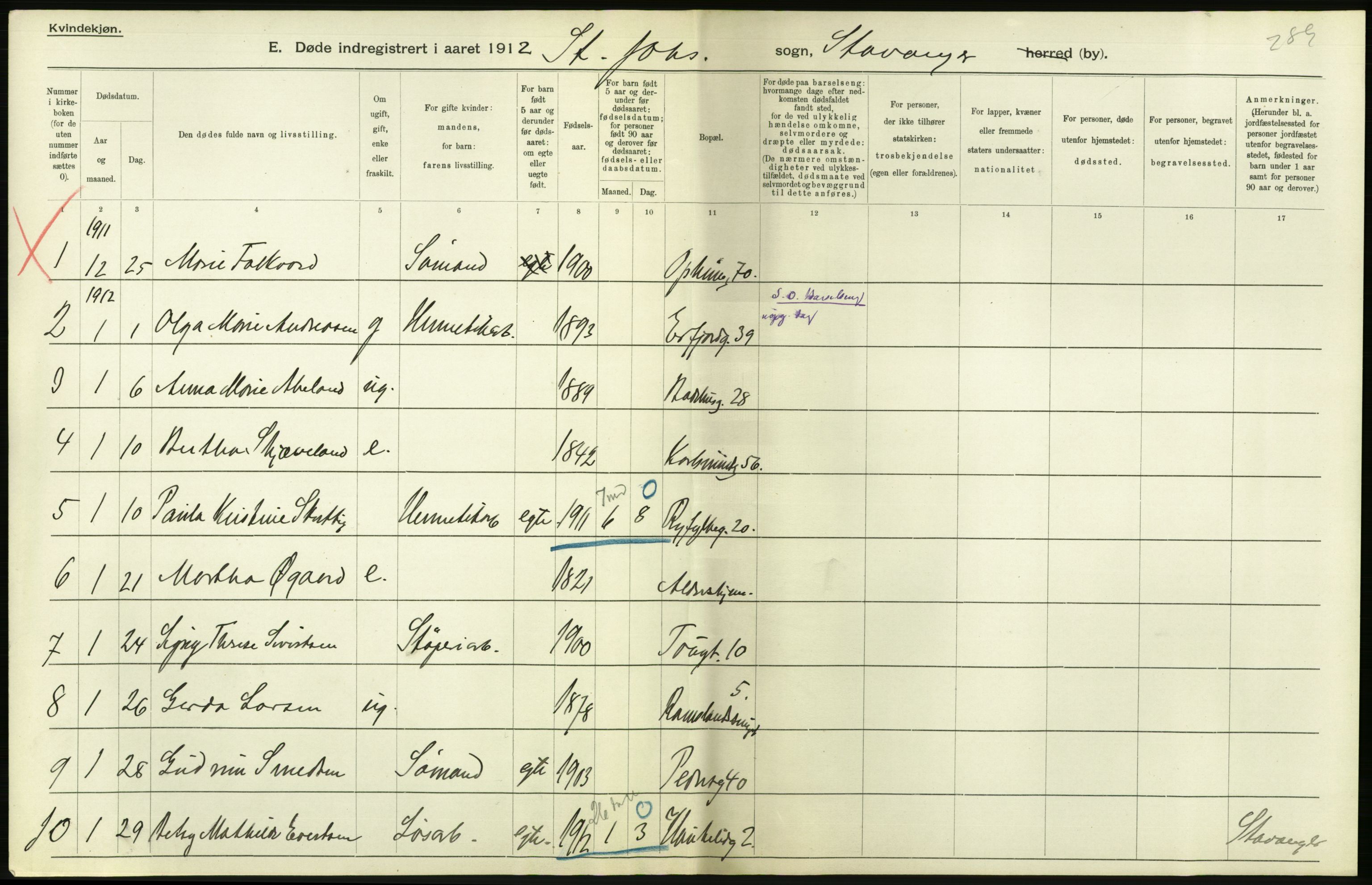 Statistisk Sentralbyrå, Folkemengdens bevegelse (Serie FB) 1912, no. 28: Stavanger amt, Astaref: AV/RA-S-2228/D/Df/Dfb/Dfbb/L0028