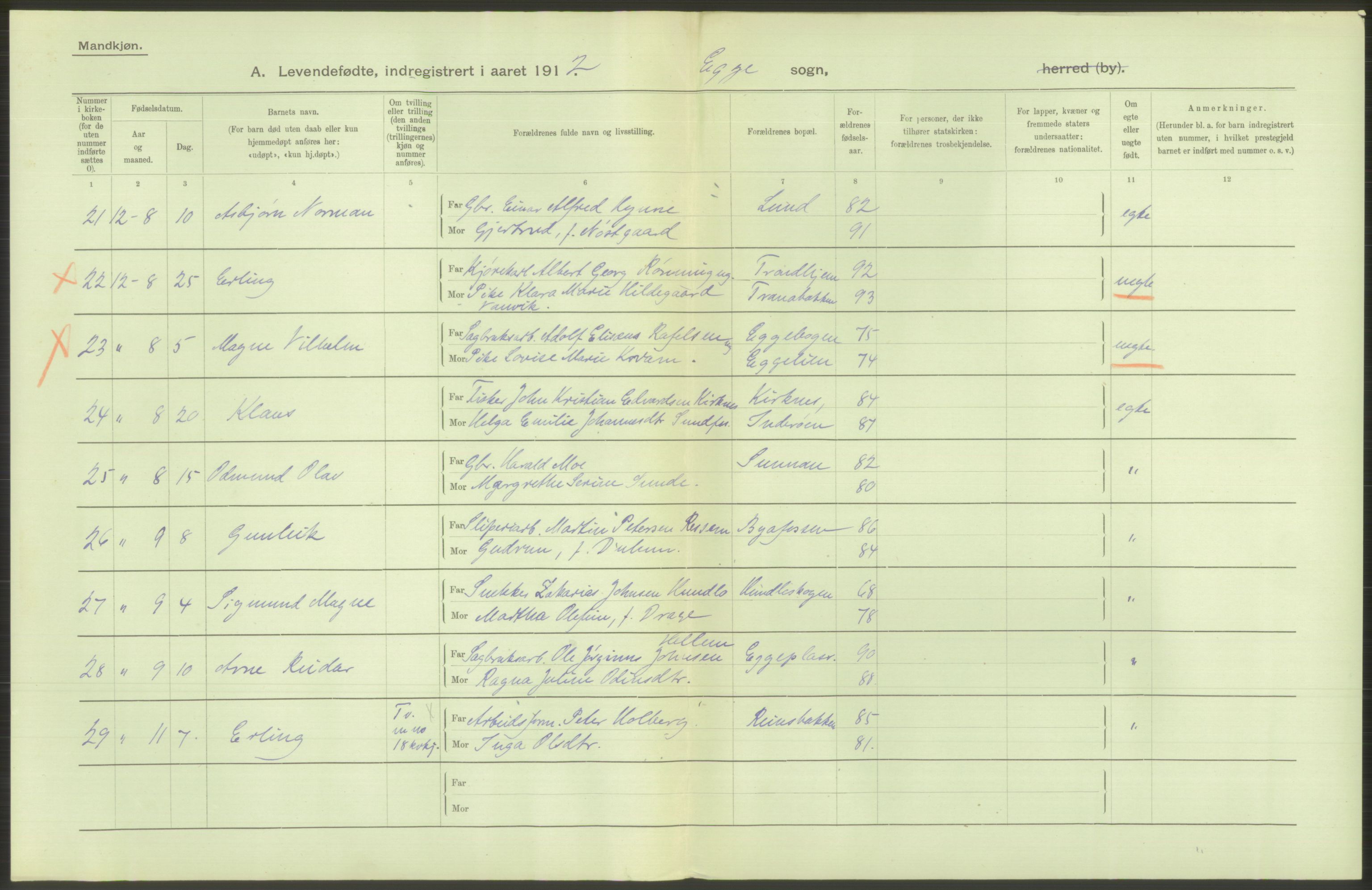 Statistisk Sentralbyrå, Folkemengdens bevegelse (Serie FB) 1912, no. 44: Nordre Trondhjems amt, Astaref: AV/RA-S-2228/D/Df/Dfb/Dfbb/L0044