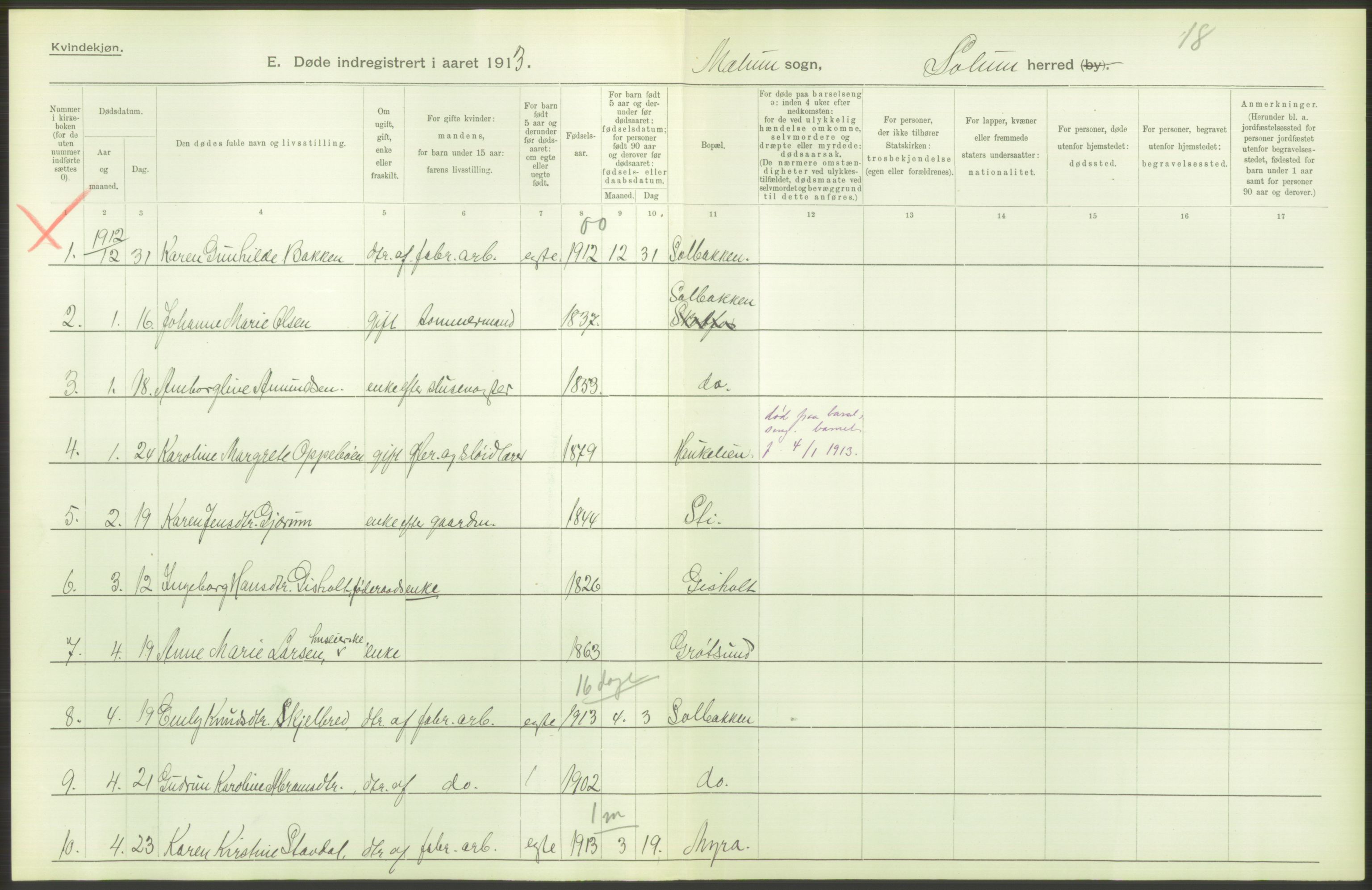 Statistisk Sentralbyrå, Folkemengdens bevegelse (Serie FB) 1913, no. 21: Bratsberg amt, Astaref: AV/RA-S-2228/D/Df/Dfb/Dfbc/L0021