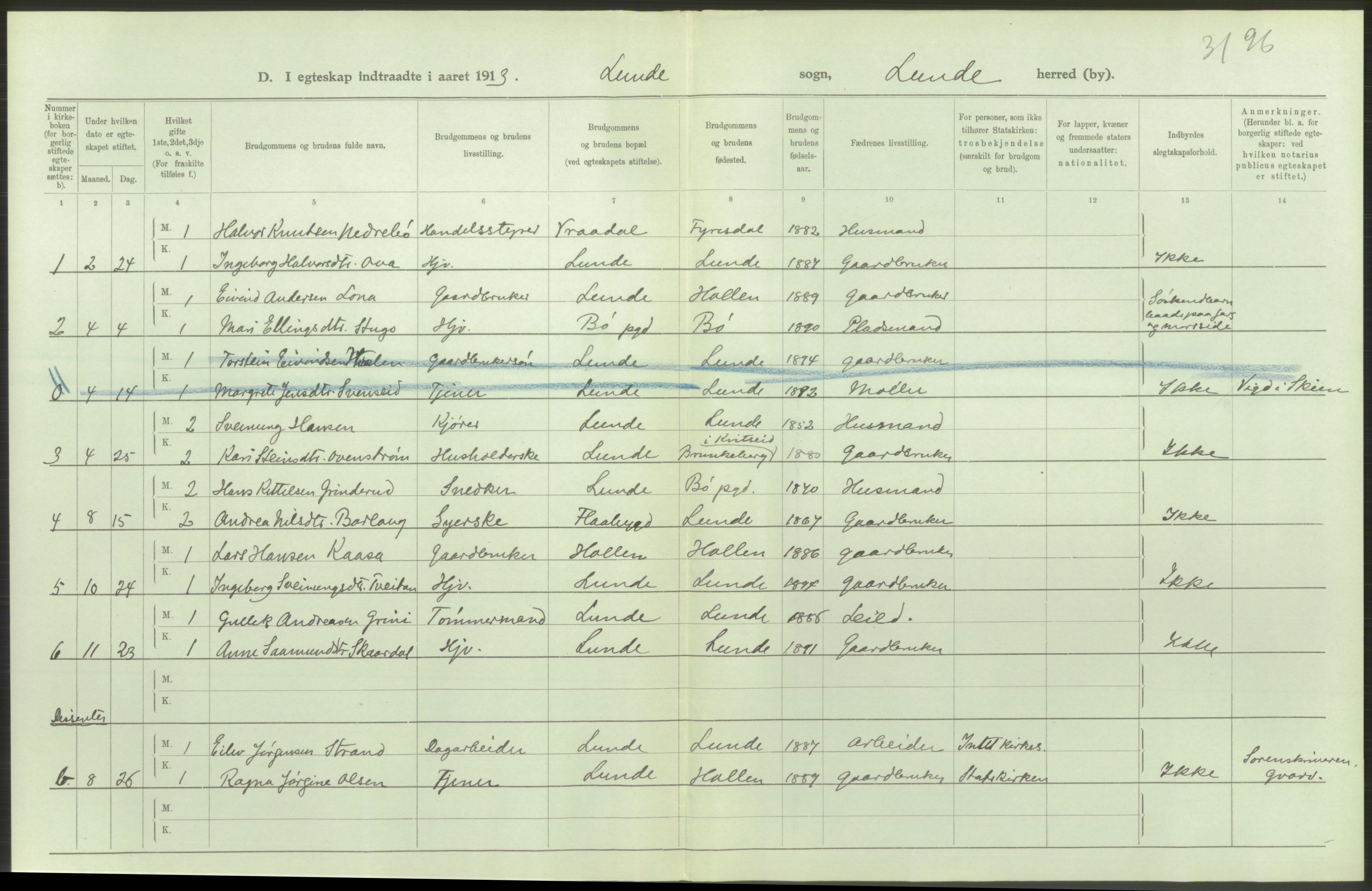 Statistisk Sentralbyrå, Folkemengdens bevegelse (Serie FB) 1913, no. 21: Bratsberg amt, Astaref: AV/RA-S-2228/D/Df/Dfb/Dfbc/L0021