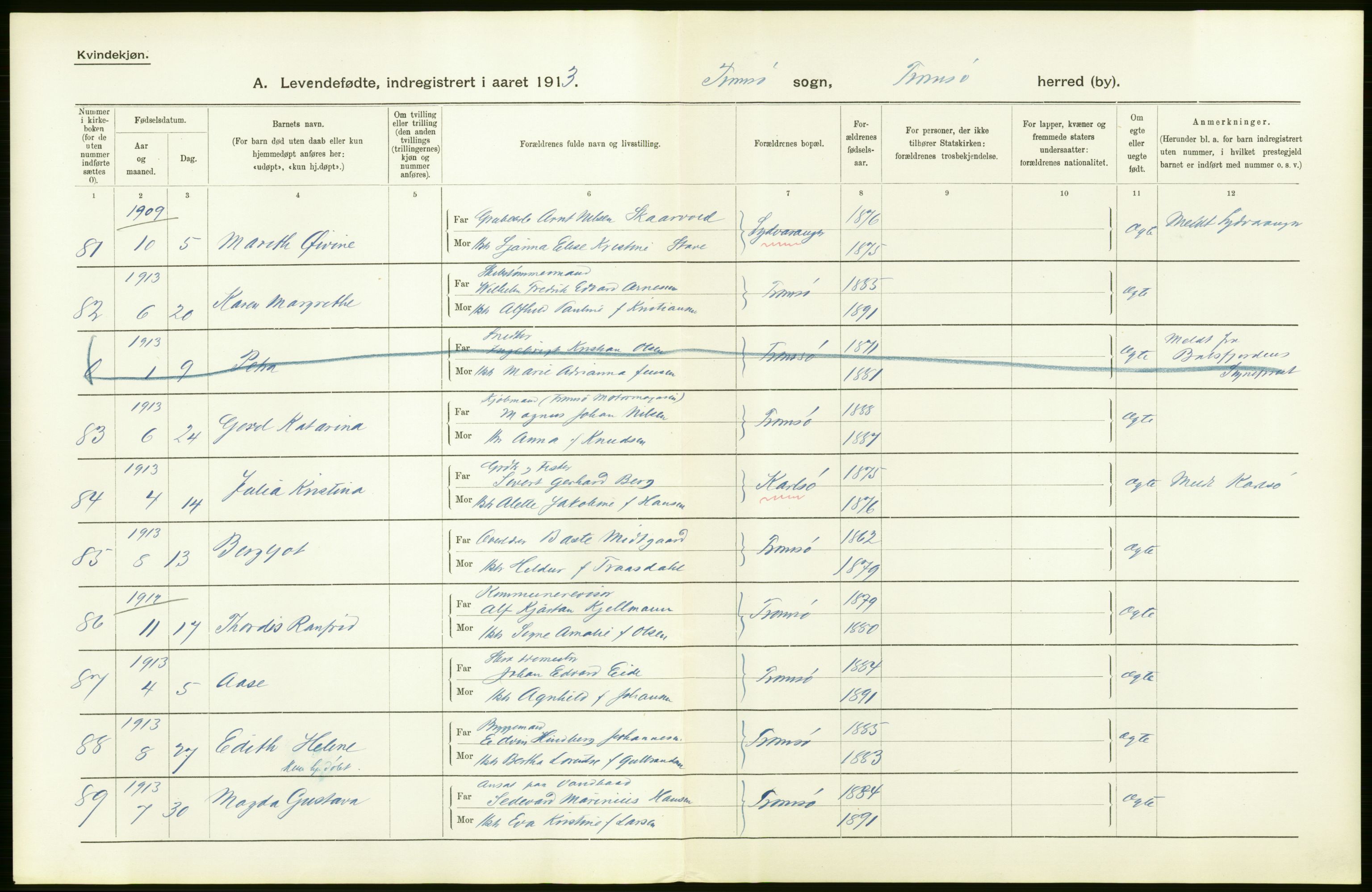 Statistisk Sentralbyrå, Folkemengdens bevegelse (Serie FB) 1913, no. 46: Tromsø amt, Astaref: AV/RA-S-2228/D/Df/Dfb/Dfbc/L0046