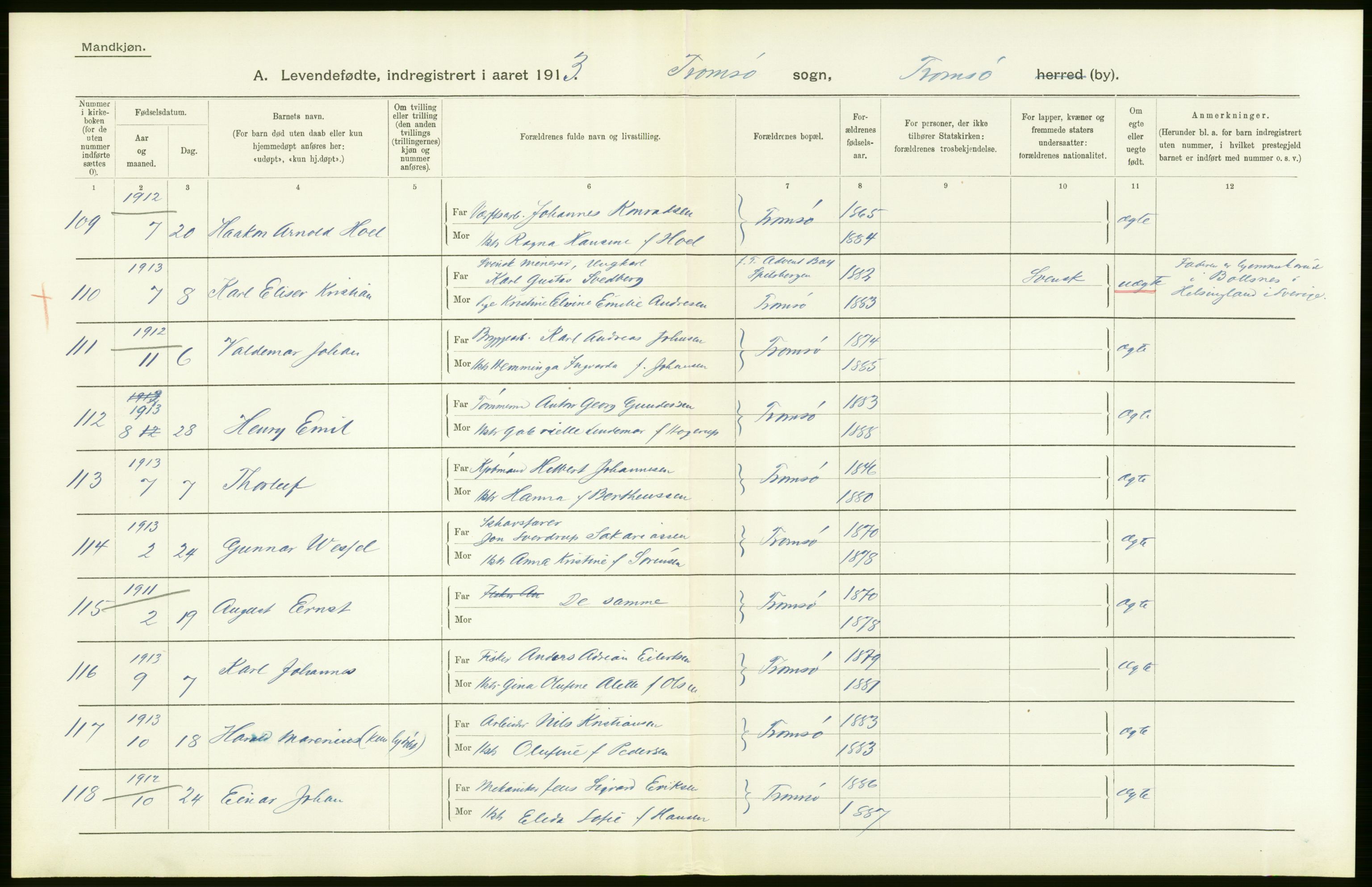 Statistisk Sentralbyrå, Folkemengdens bevegelse (Serie FB) 1913, no. 46: Tromsø amt, Astaref: AV/RA-S-2228/D/Df/Dfb/Dfbc/L0046