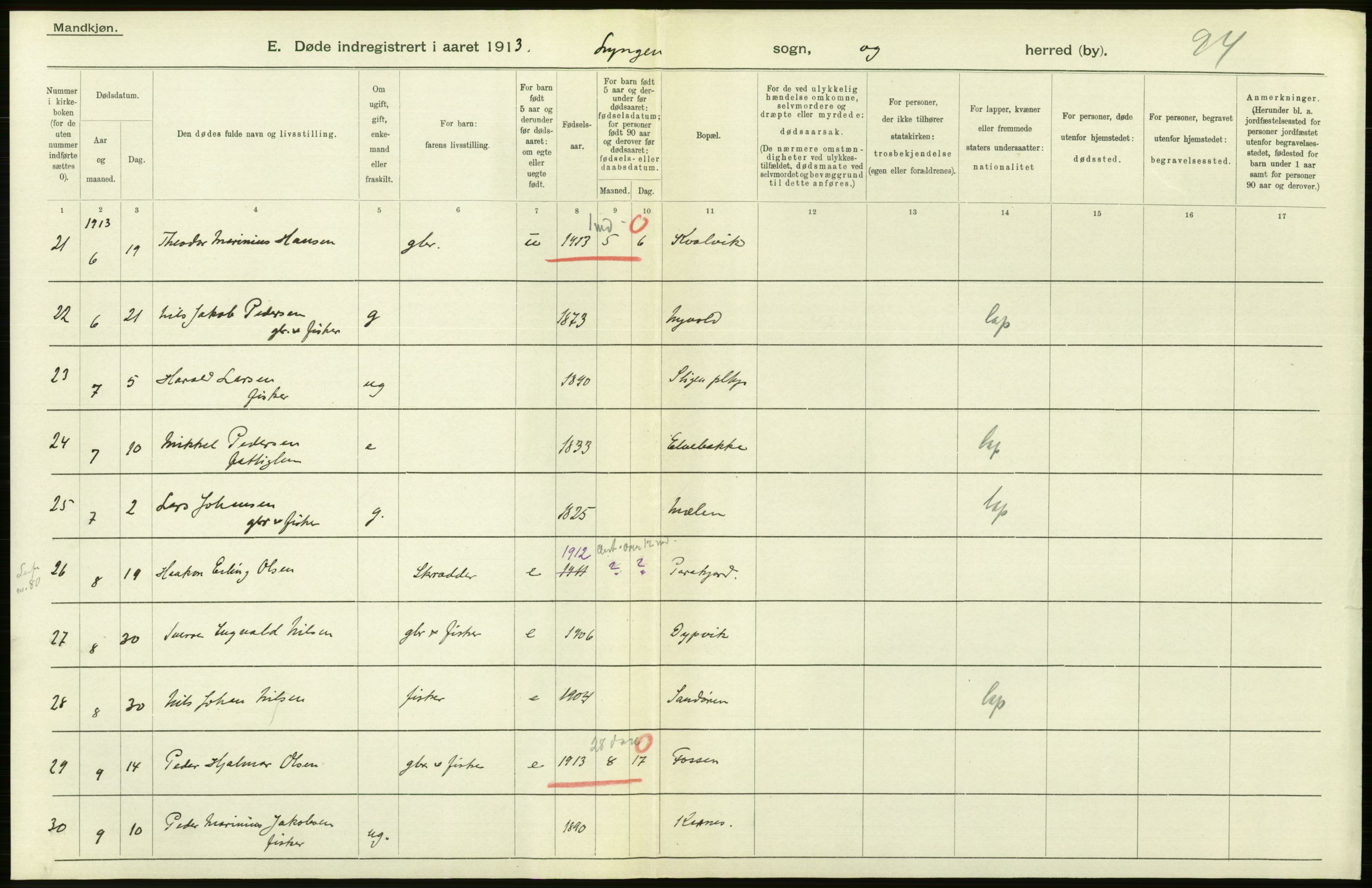 Statistisk Sentralbyrå, Folkemengdens bevegelse (Serie FB) 1913, no. 47: Tromsø amt, Astaref: AV/RA-S-2228/D/Df/Dfb/Dfbc/L0047