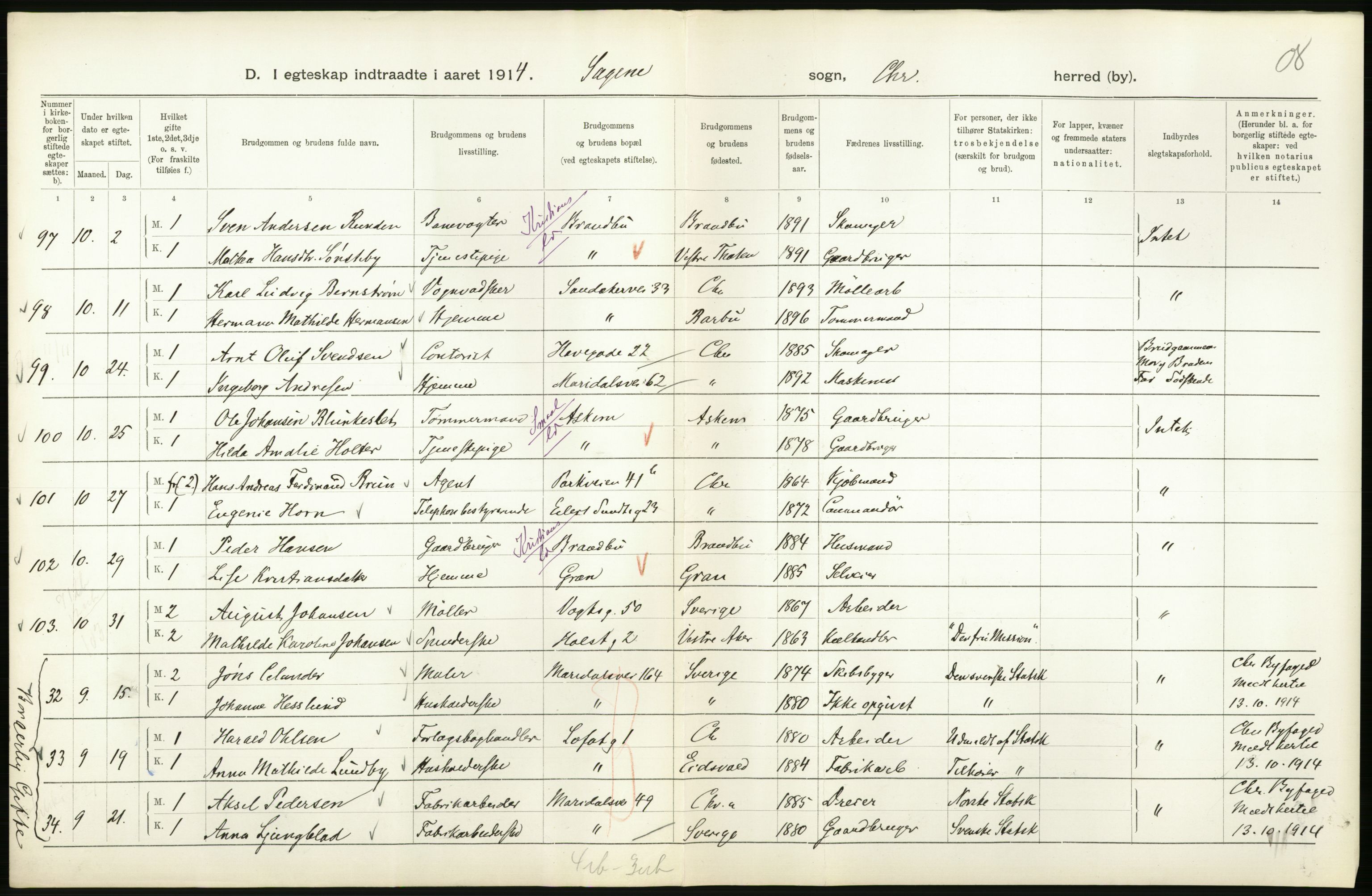 Statistisk Sentralbyrå, Folkemengdens bevegelse (Serie FB) 1914, no. 7: Kristiania, Astaref: AV/RA-S-2228/D/Df/Dfb/Dfbd/L0007