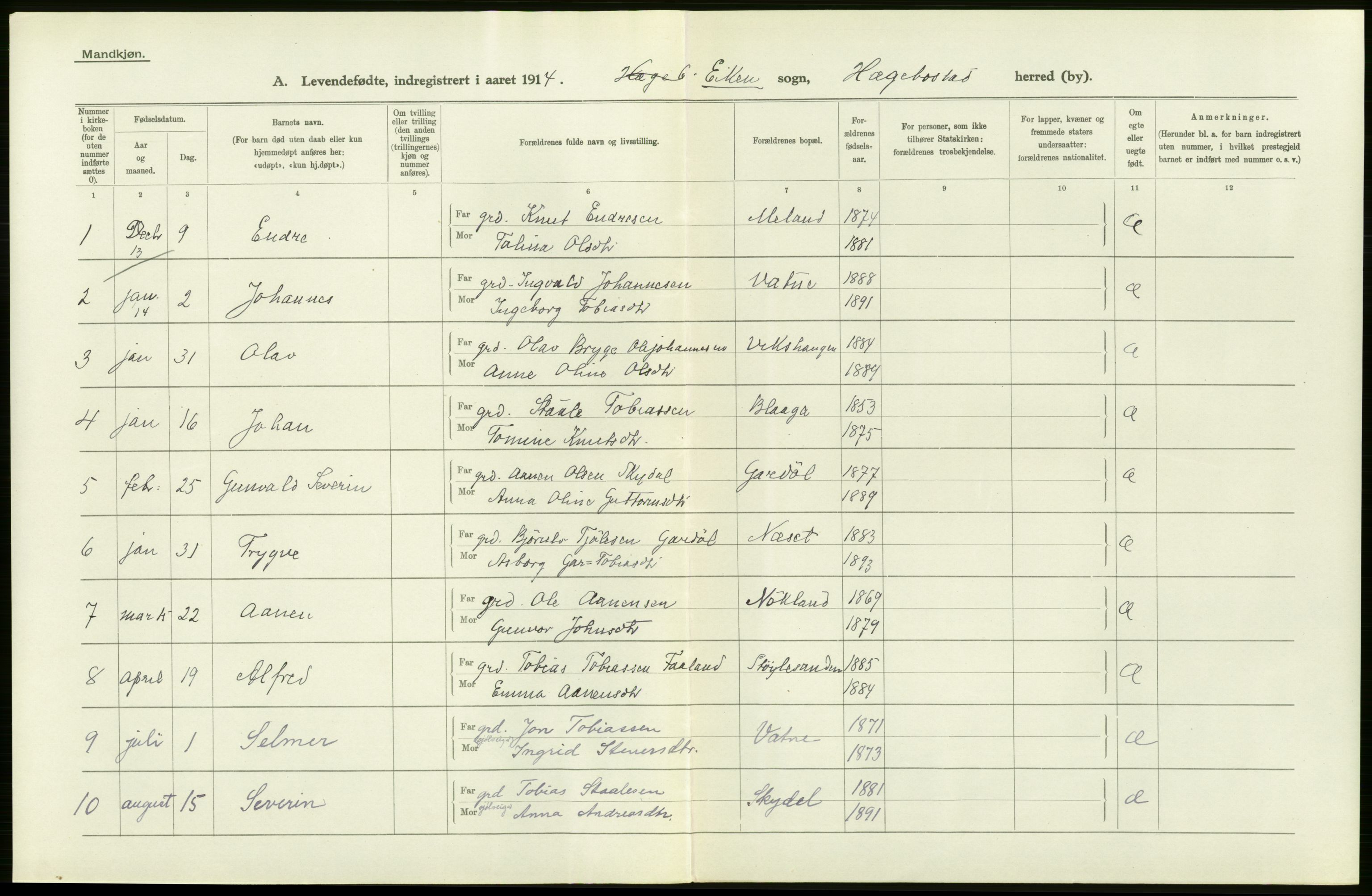 Statistisk Sentralbyrå, Folkemengdens bevegelse (Serie FB) 1914, no. 22: Lister og Mandals amt, Astaref: AV/RA-S-2228/D/Df/Dfb/Dfbd/L0022
