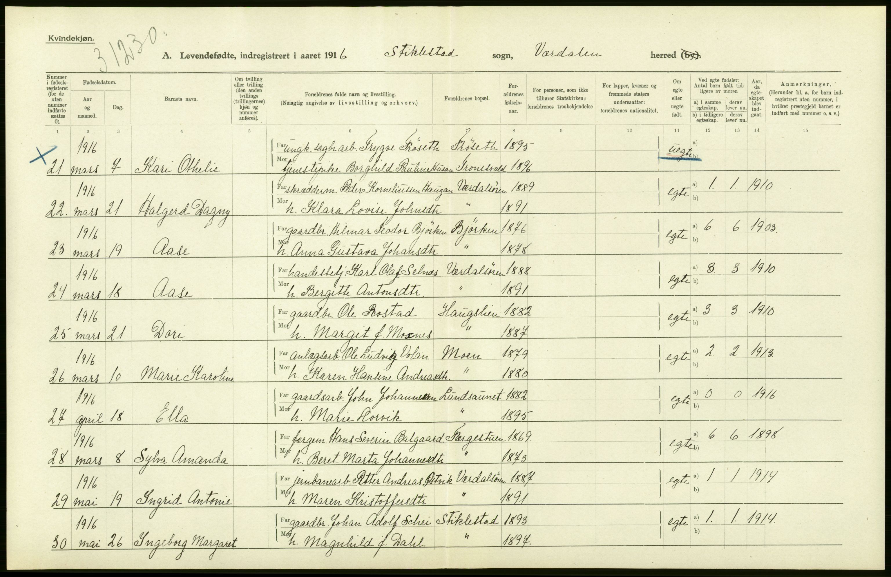 Statistisk Sentralbyrå, Folkemengdens bevegelse (Serie FB) 1916, no. 48: Nordre Trondhjems amt, Astaref: AV/RA-S-2228/D/Df/Dfb/Dfbf/L0048