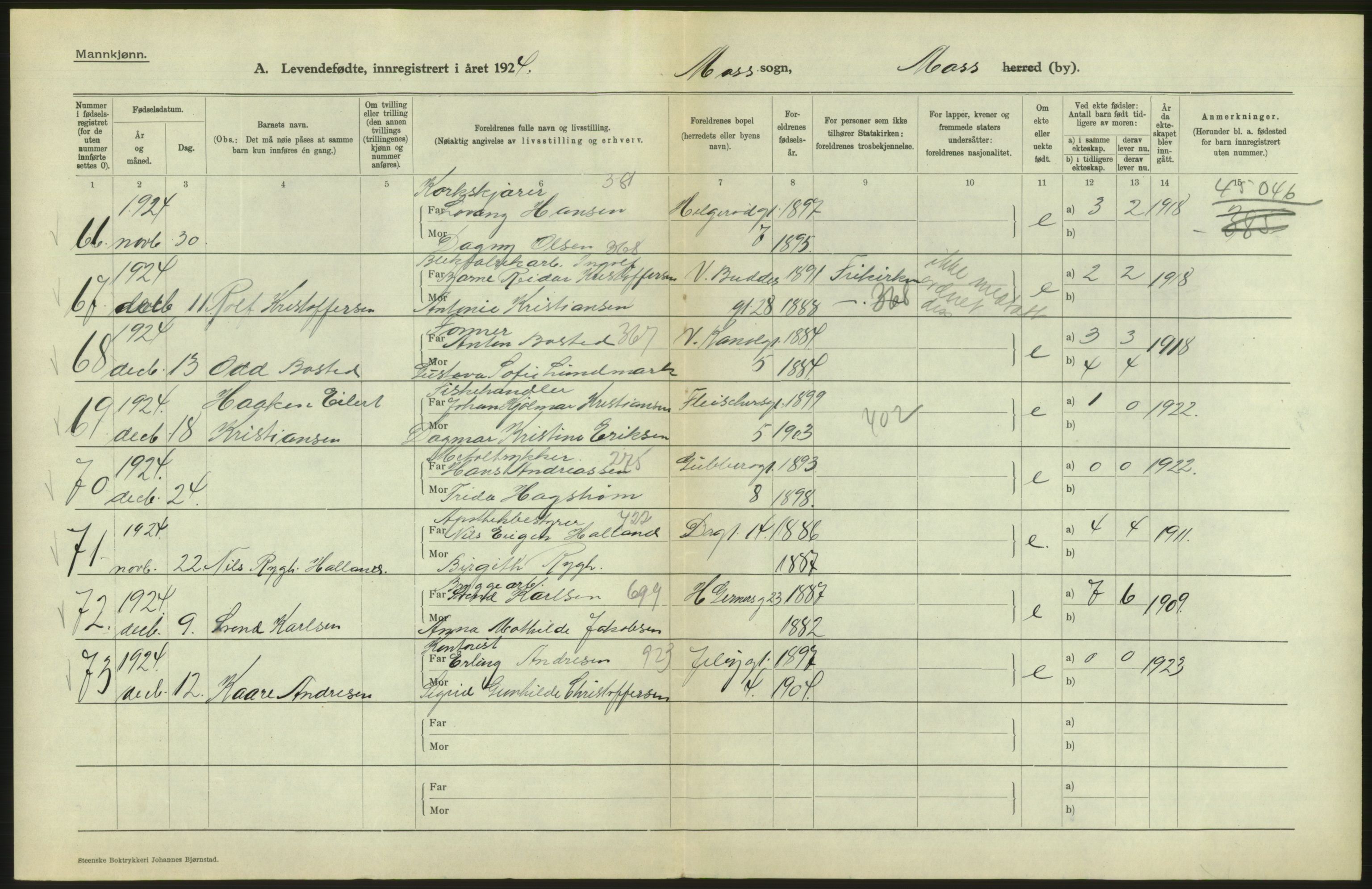 Statistisk Sentralbyrå, Folkemengdens bevegelse (Serie FB) 1924, no. 1: Østfold, births, Astaref: AV/RA-S-2228/D/Df/Dfc/Dfcd/L0001