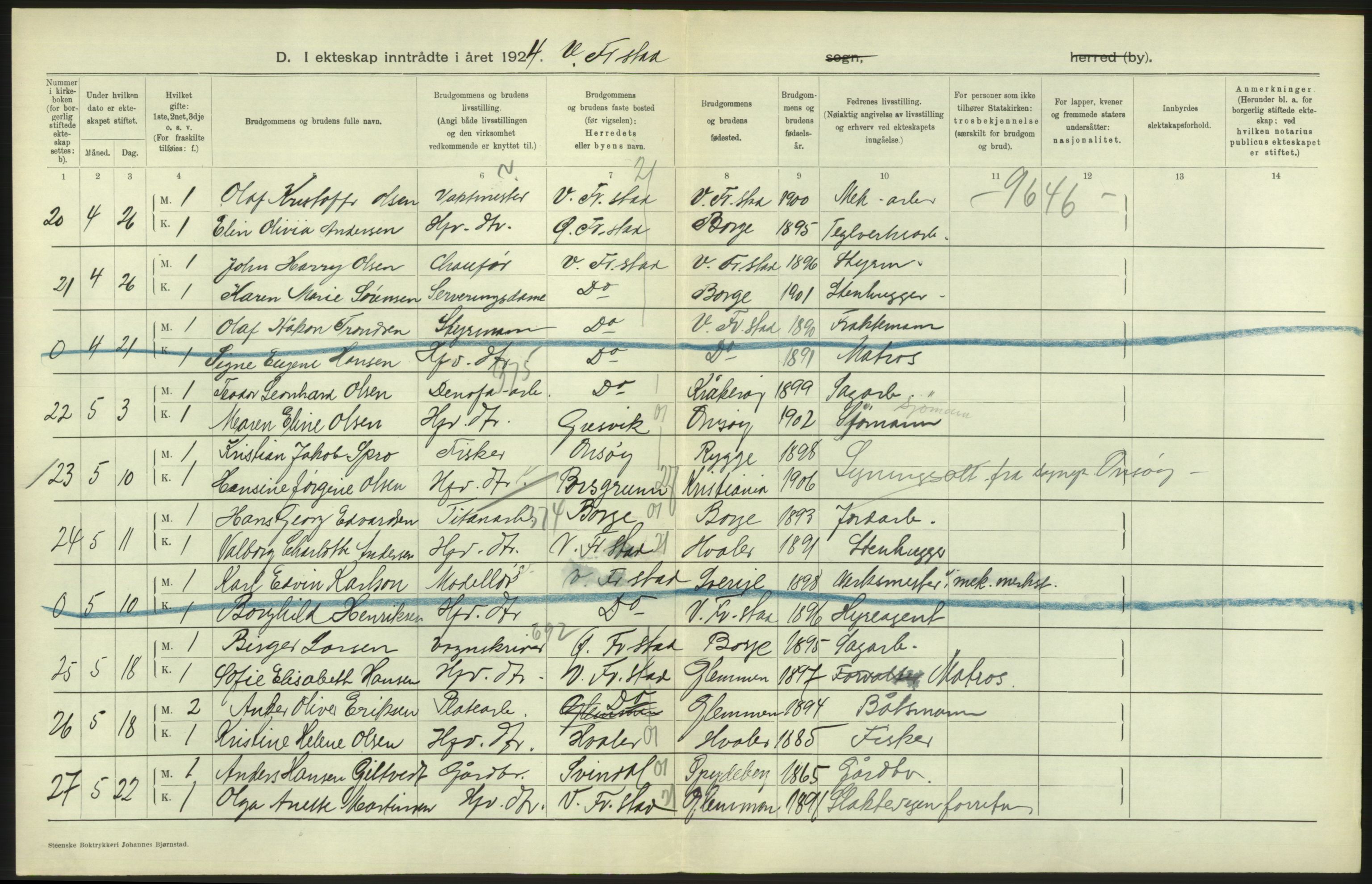 Statistisk Sentralbyrå, Folkemengdens bevegelse (Serie FB) 1924, no. 2: Østfold, marriages, deaths and stillbirths, Astaref: AV/RA-S-2228/D/Df/Dfc/Dfcd/L0002